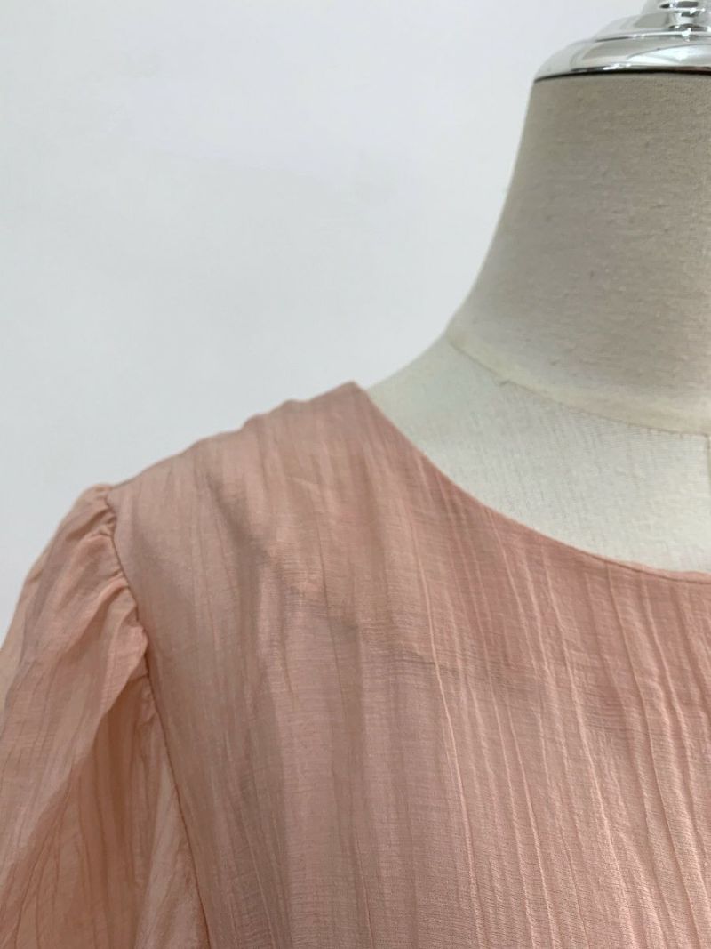 楊柳生地が清涼感があり、リゾートシーンでも着たい一枚です。
