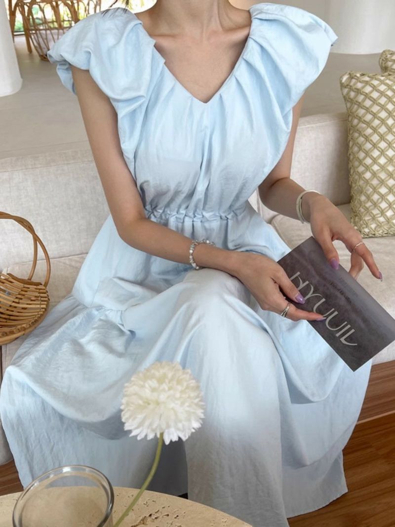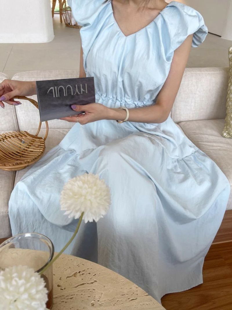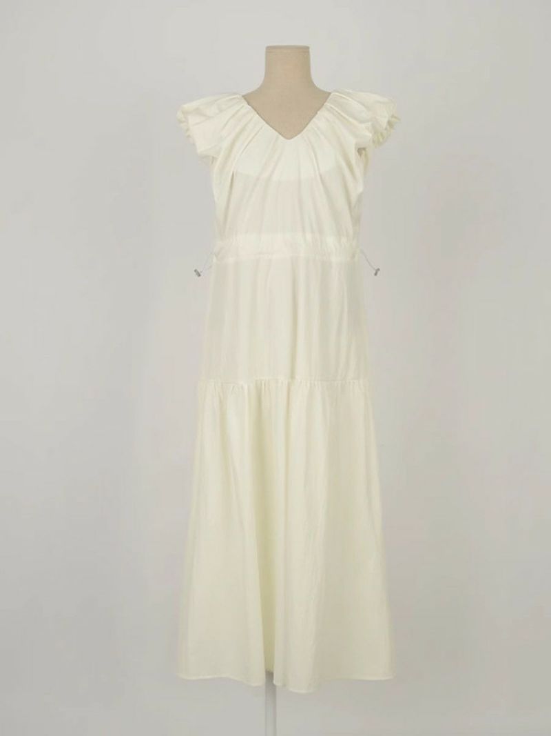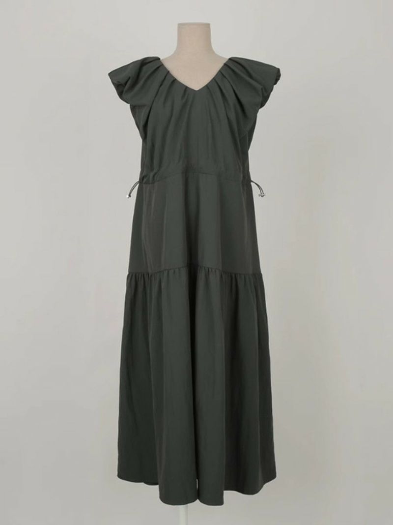 一部即納 3color Vネック ティアード ロング ワンピース