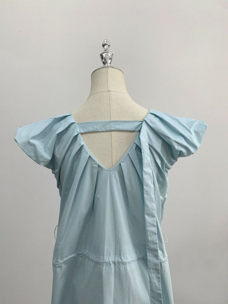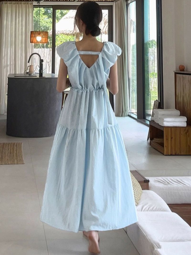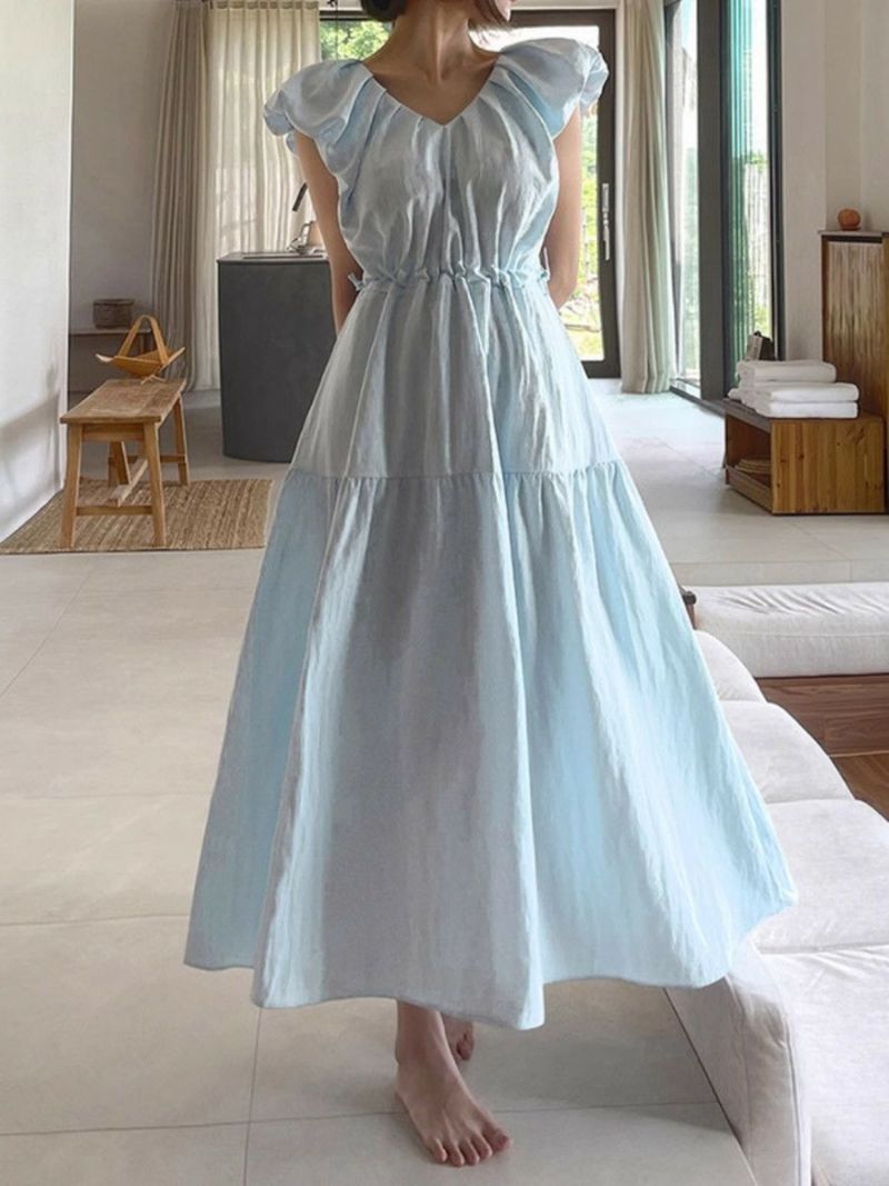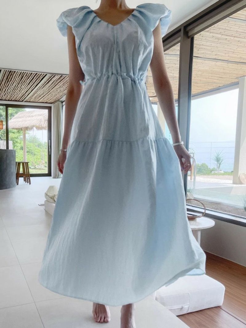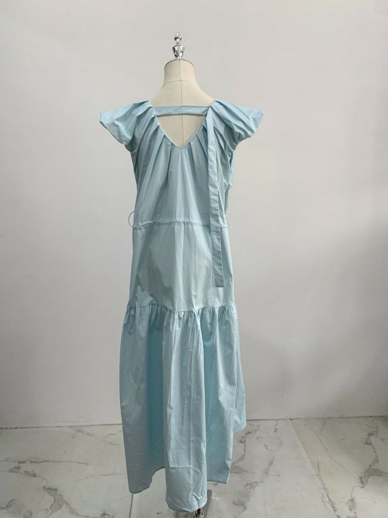 前後Vネックのティアードロングワンピース