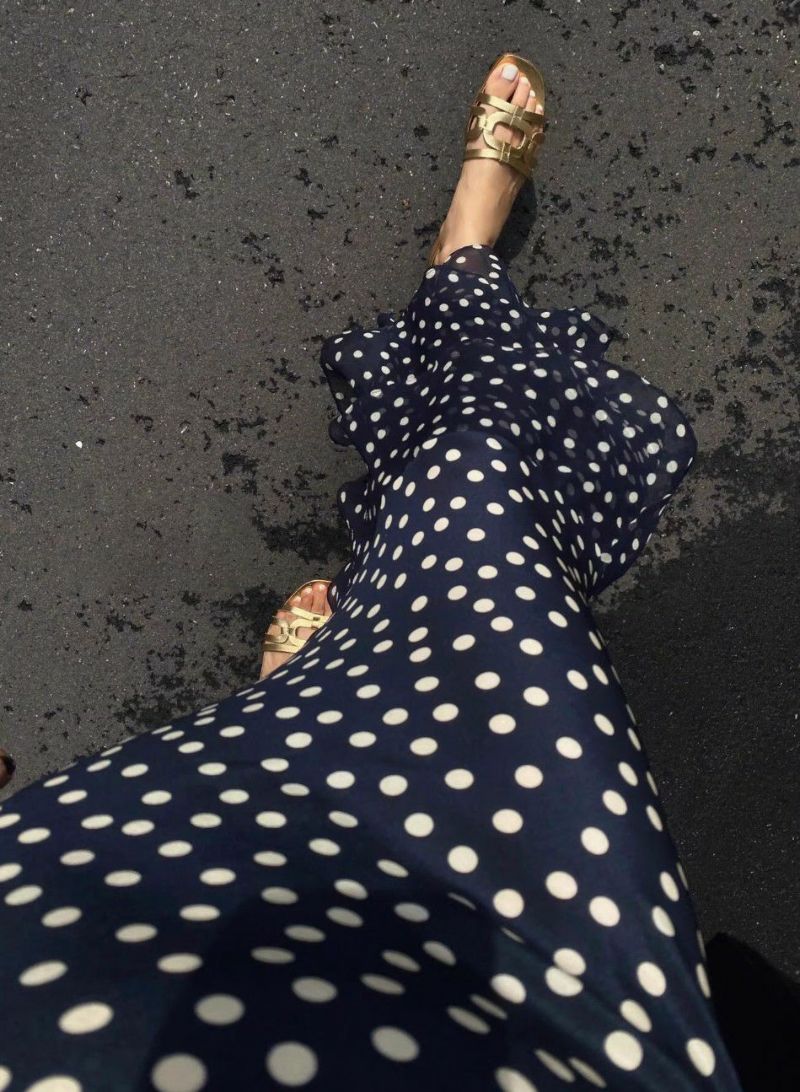 Dotが大人可愛いロング丈のシフォンワンピース