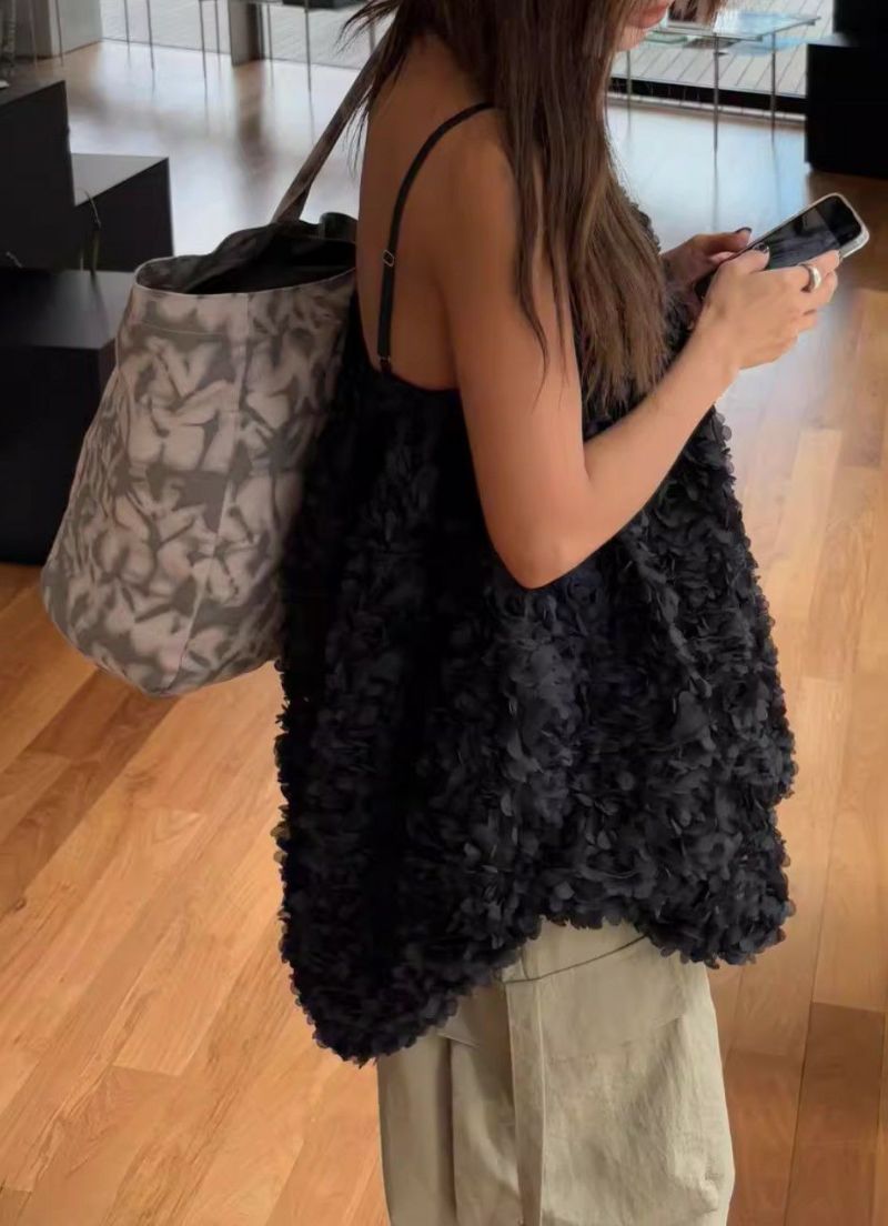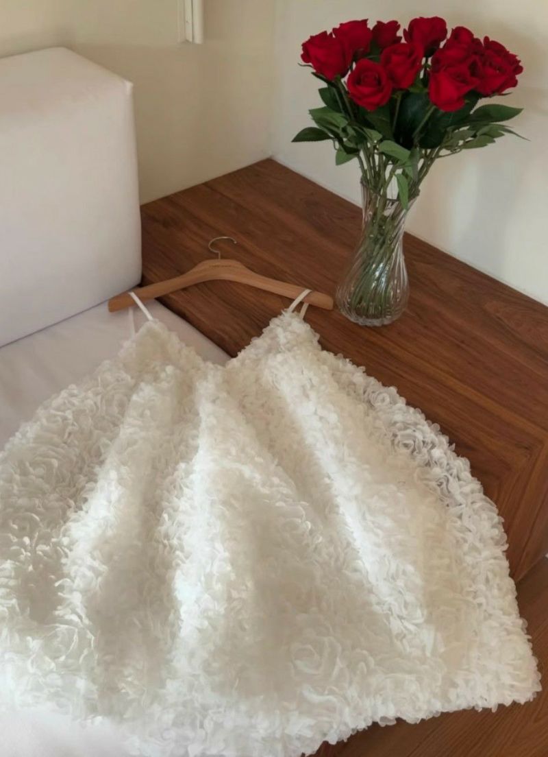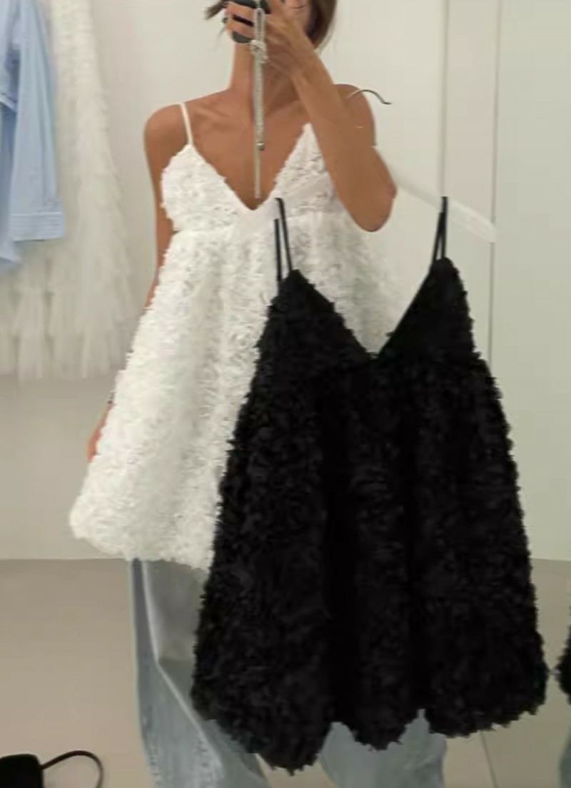 チュール生地にフラワーがデザインされたキャミソールワンピース