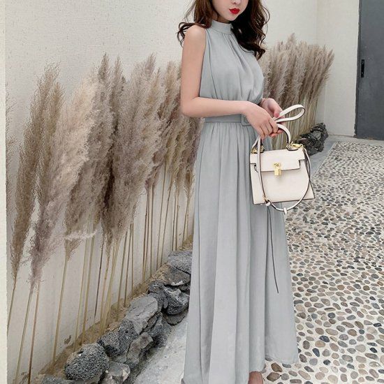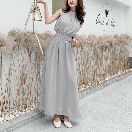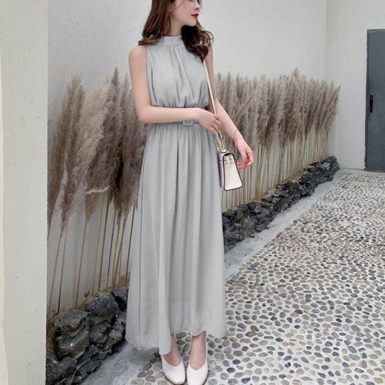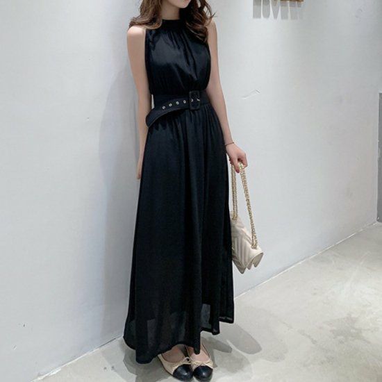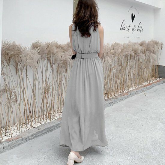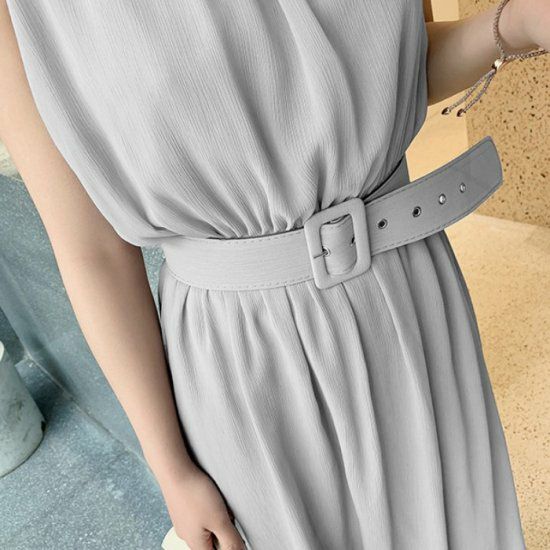 4. 予約* 2color ロング丈 ウエストベルト シフォン ワンピース