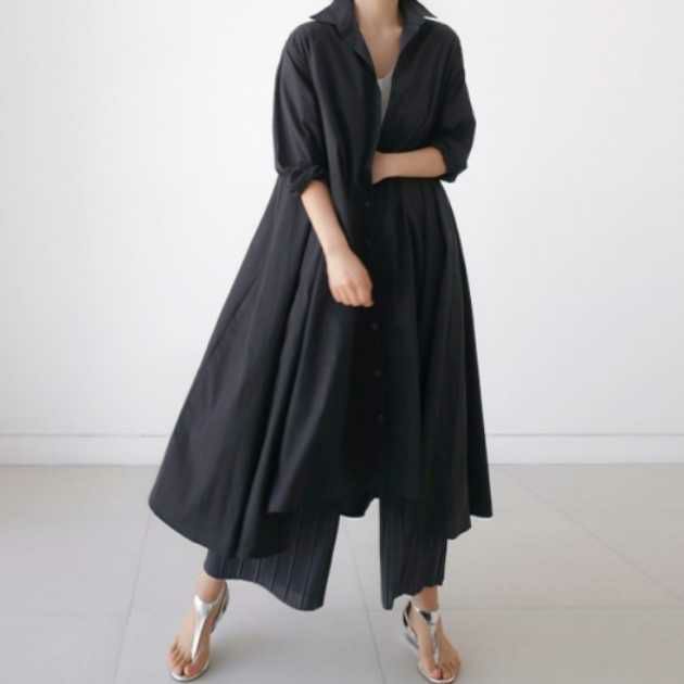 予約 ミモレ丈 シャツ ワンピース フレアー
