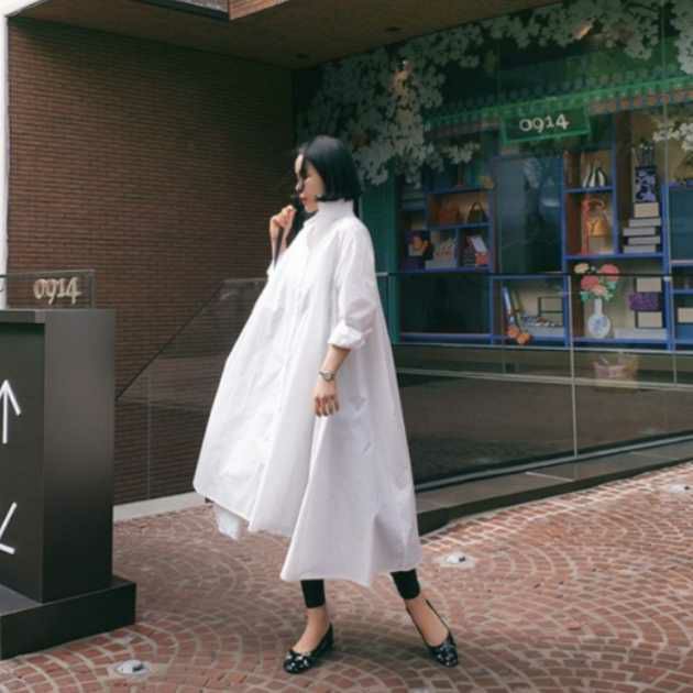 生地が贅沢に使われたボリューム感のあるシャツワンピース