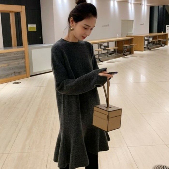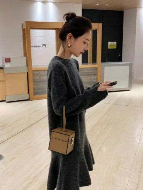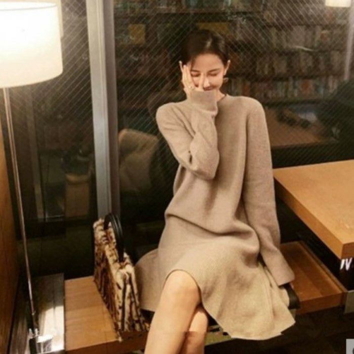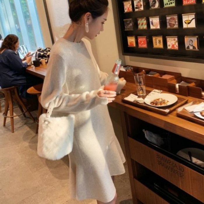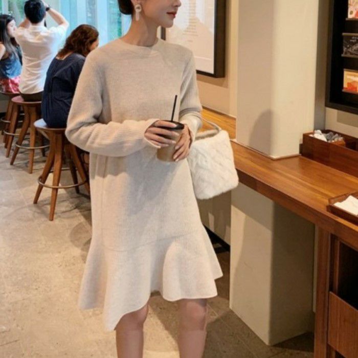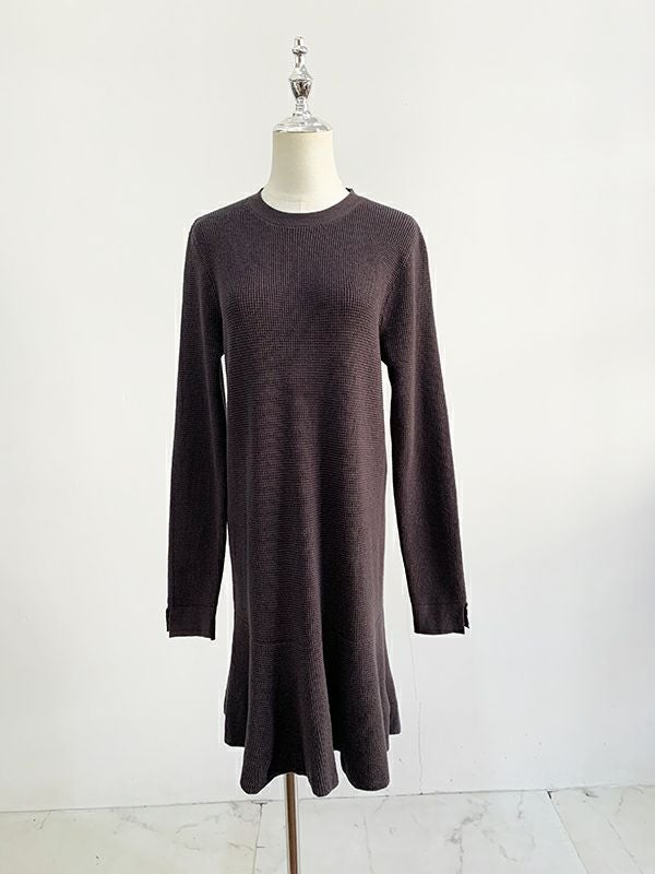 予約* 4color Aライン ワンピース ニット ミディ丈