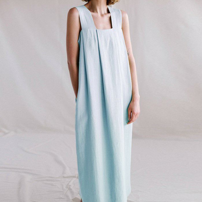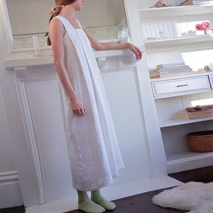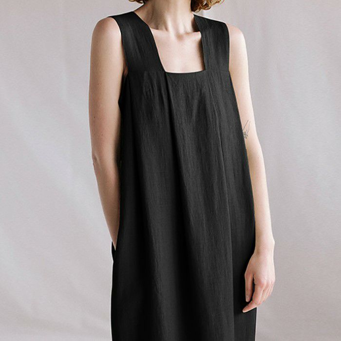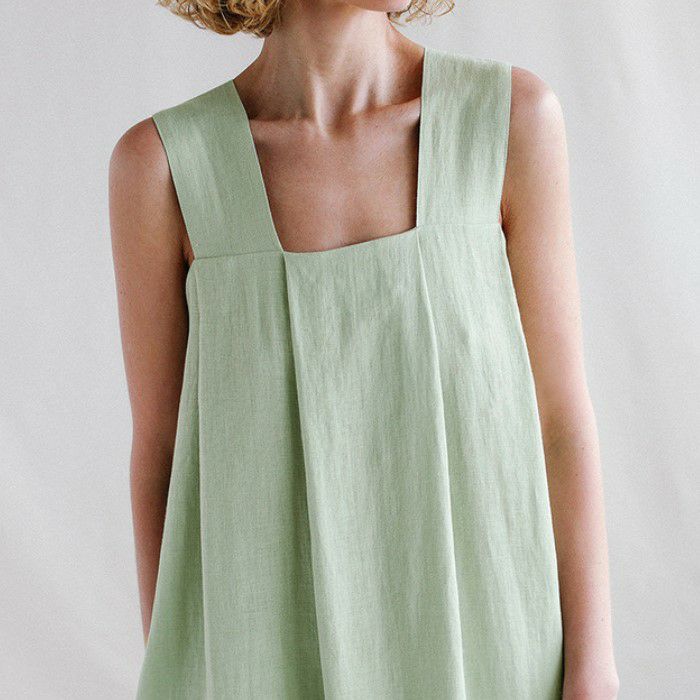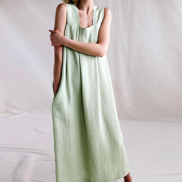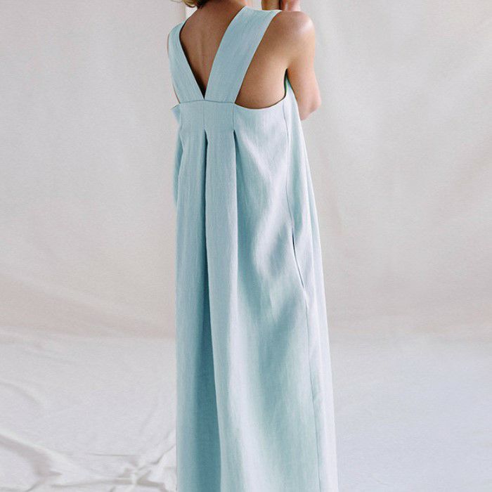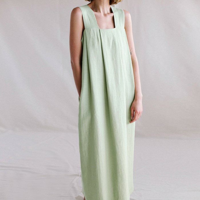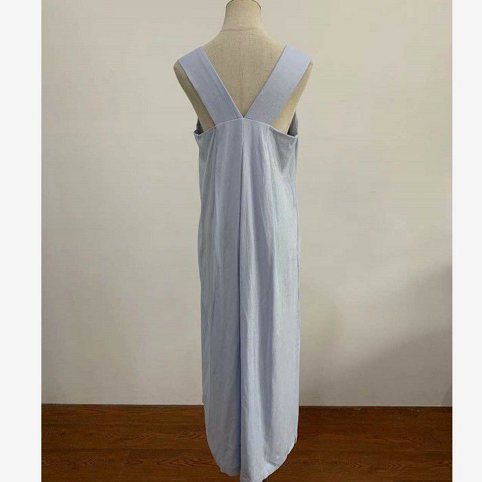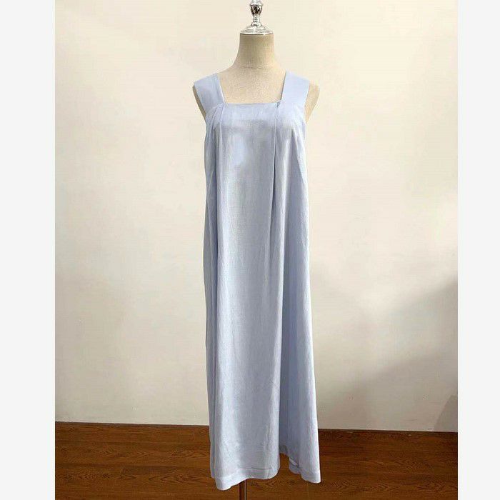予約 4color リネン タック ワンピース ロング サスペンダー