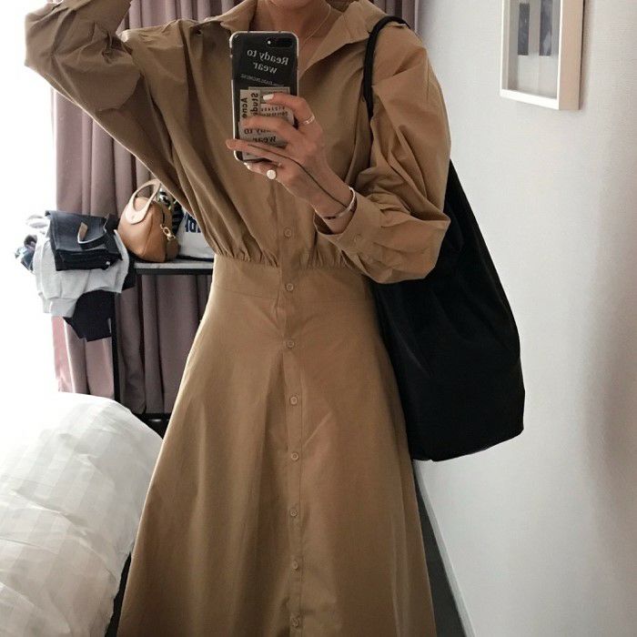 予約 ミモレ丈 シャツ ワンピース フレアー