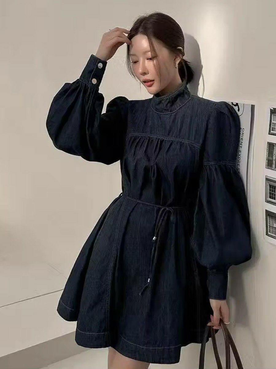 予約 2color ボリュームスリーブ ロング シャツ ワンピース