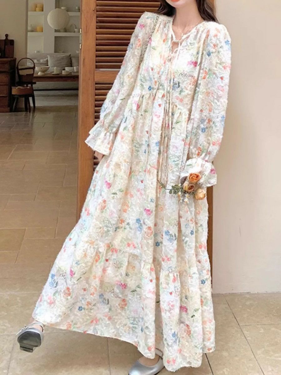 予約 レースアップ 編み上げ ロング 長袖 ワンピース