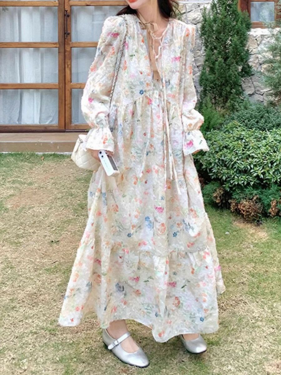 予約 2color フラワー トワルドジュイ ボウタイ ロング ワンピース