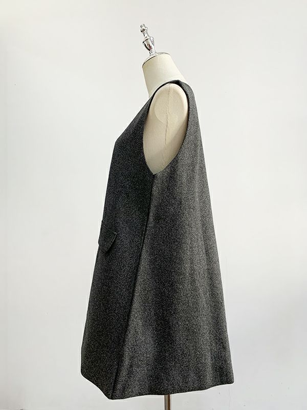 即納 フリースウール スリット ロング Vネック スリーブレス ワンピース