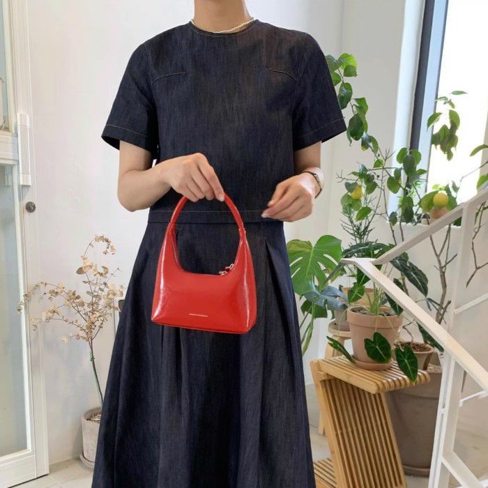 予約 Denim ハーフスリーブ プルオーバー+ スカート セットアップ