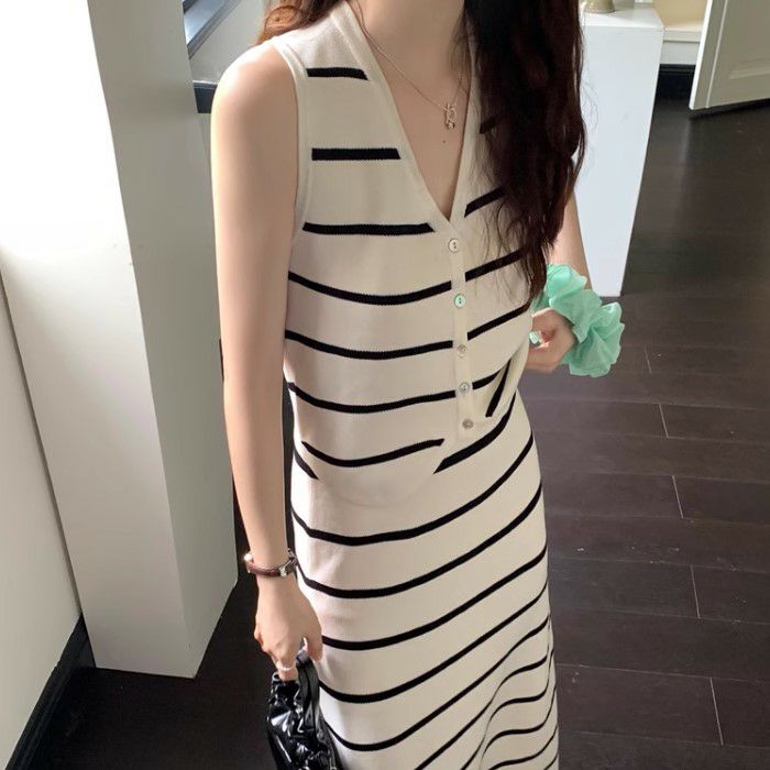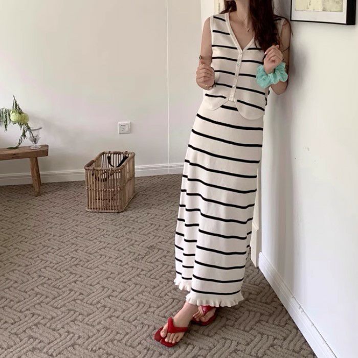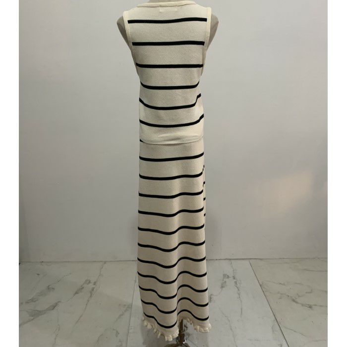 2set ボーダー ニット ジレ セットアップ タイト ロングスカート