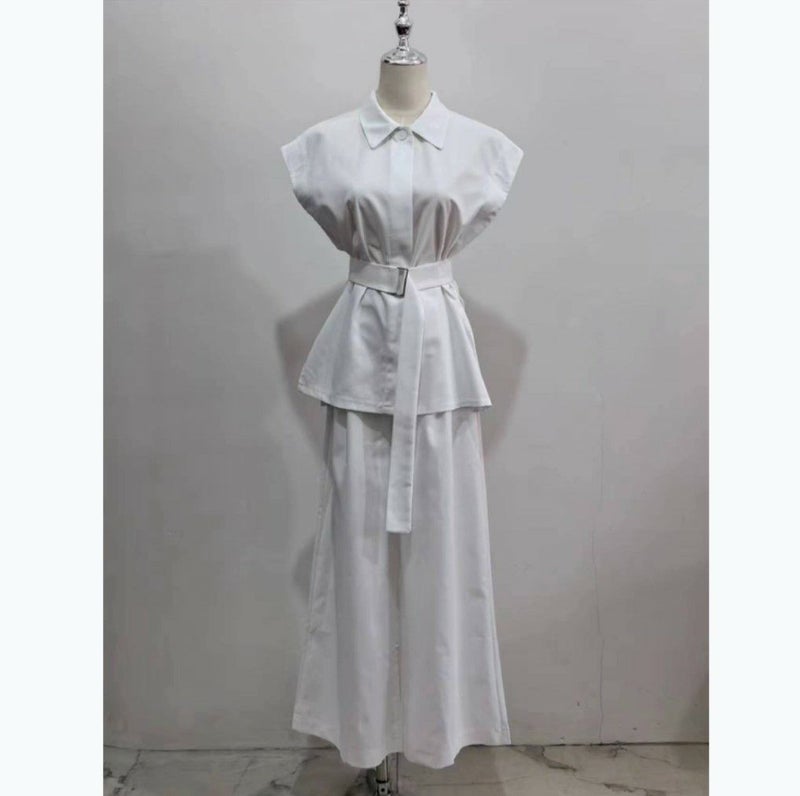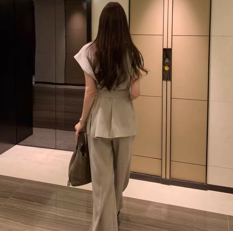 フレンチスリーブとワイドパンツのセットアップ