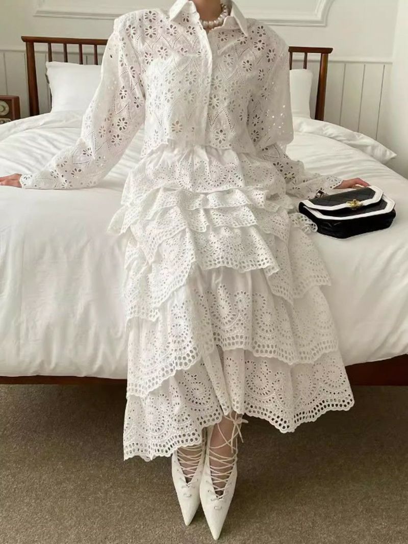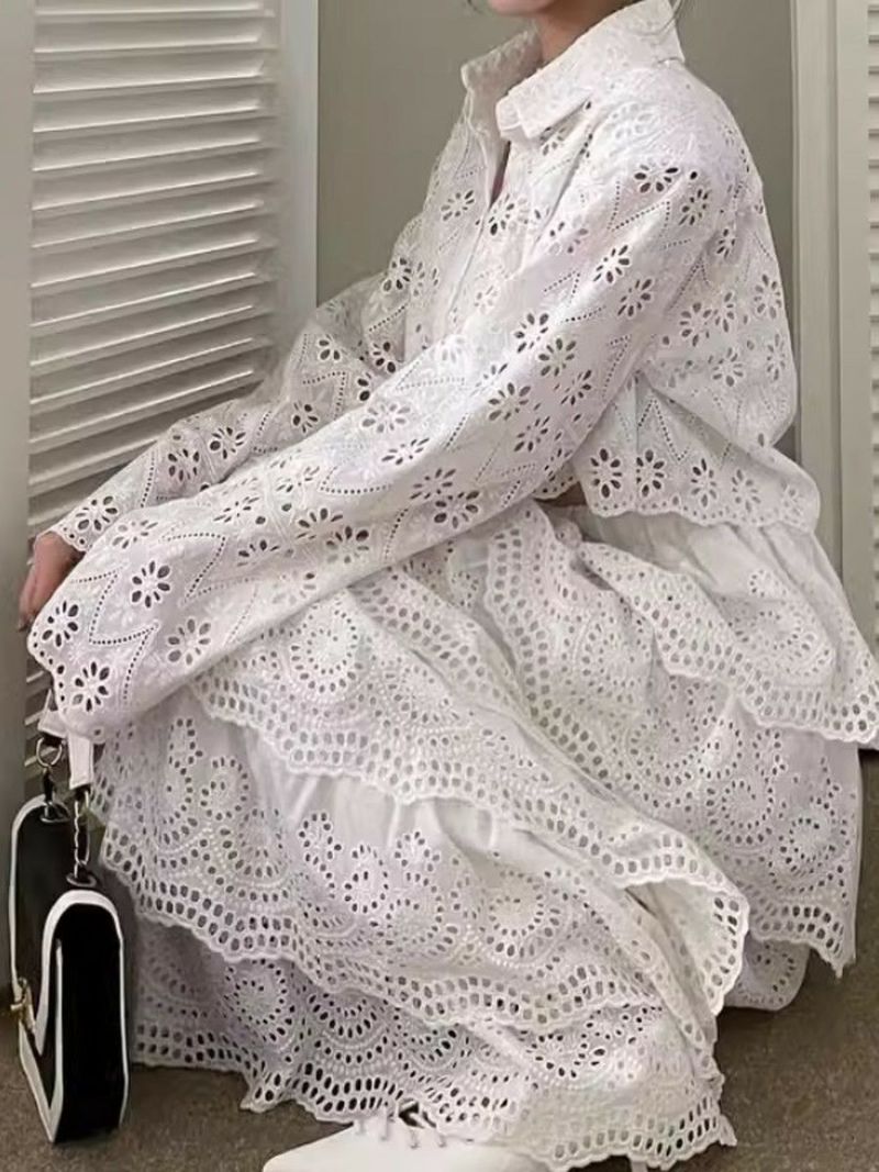 予約 2set カットワーク シャツ ➕ ティアード スカート