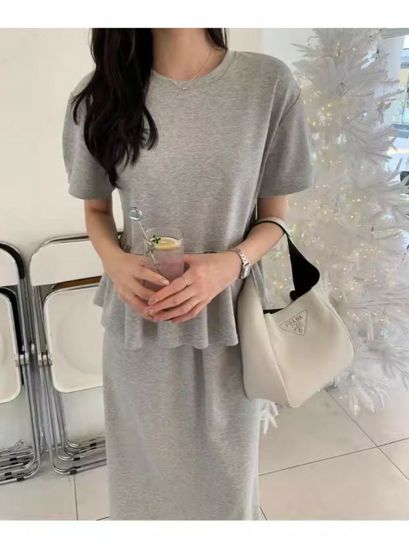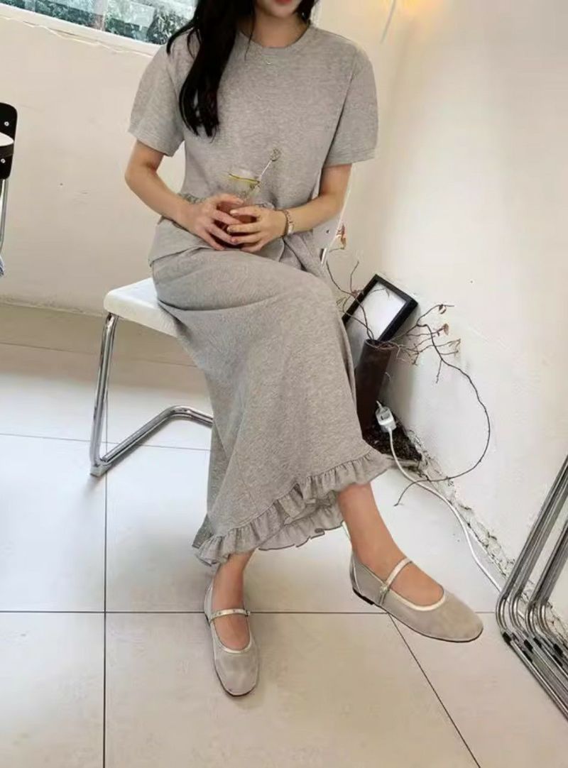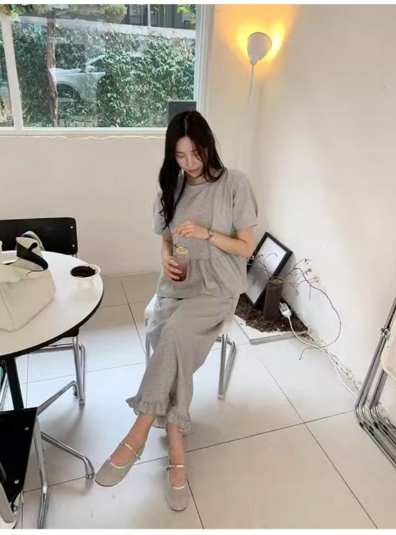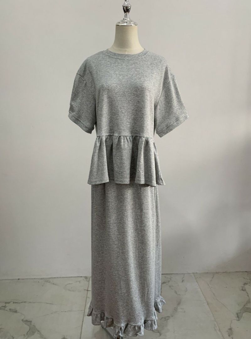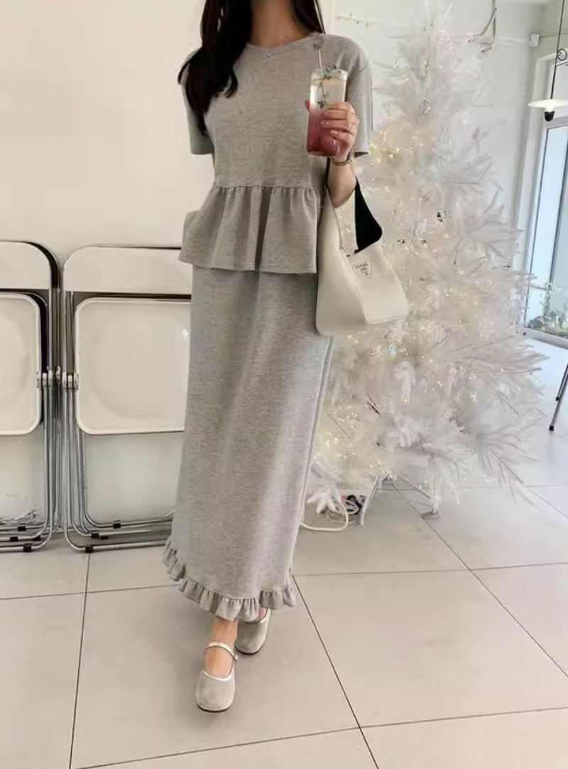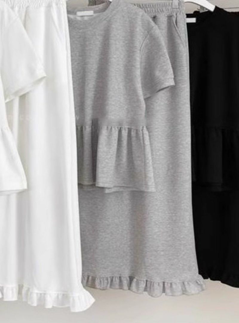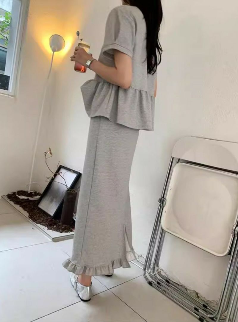 予約 3color セットアップ フリル スウェット + ロング スカート