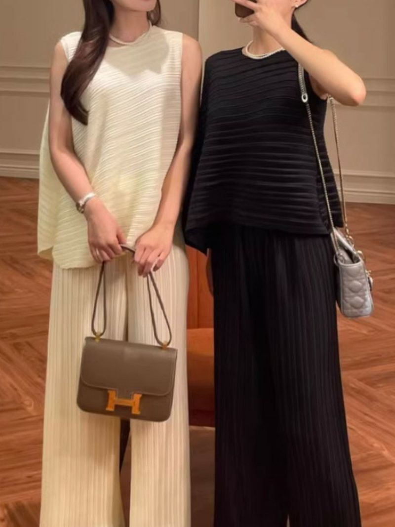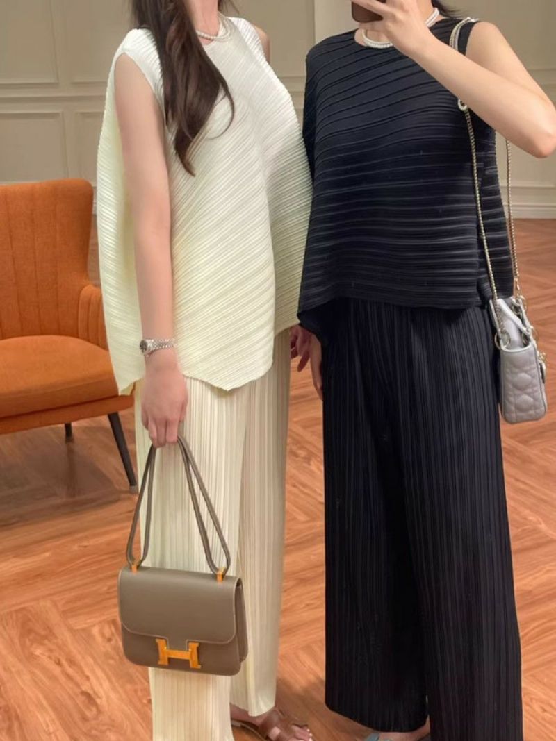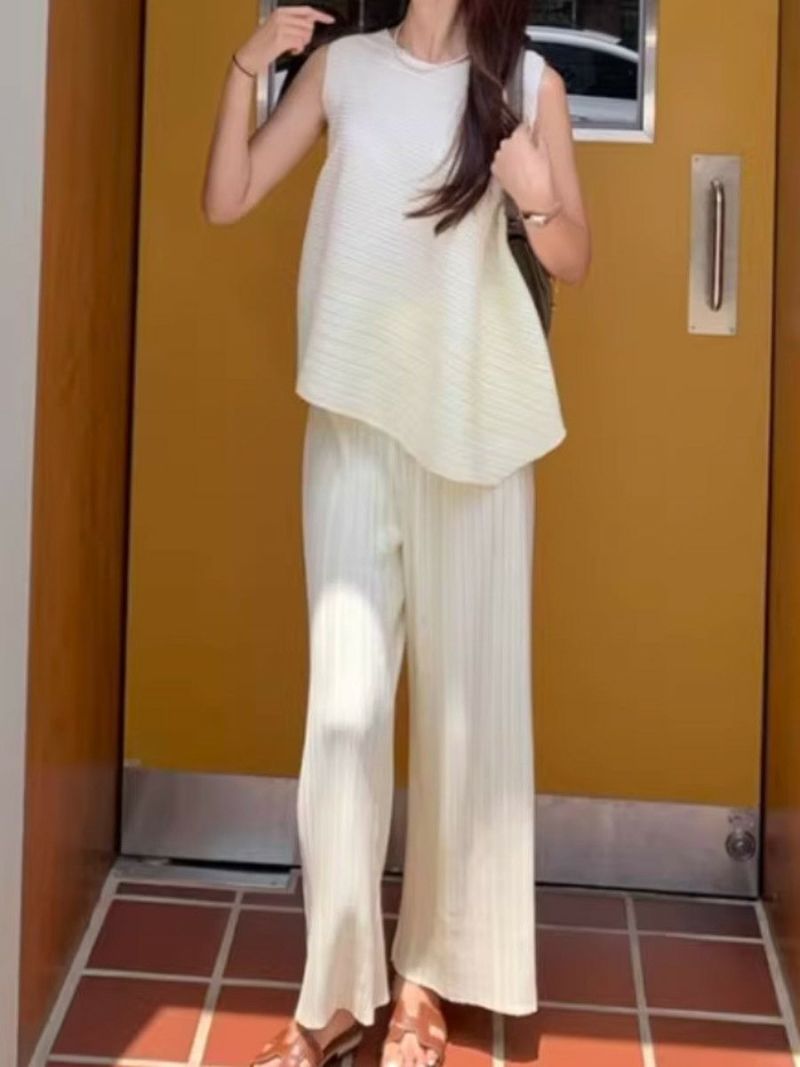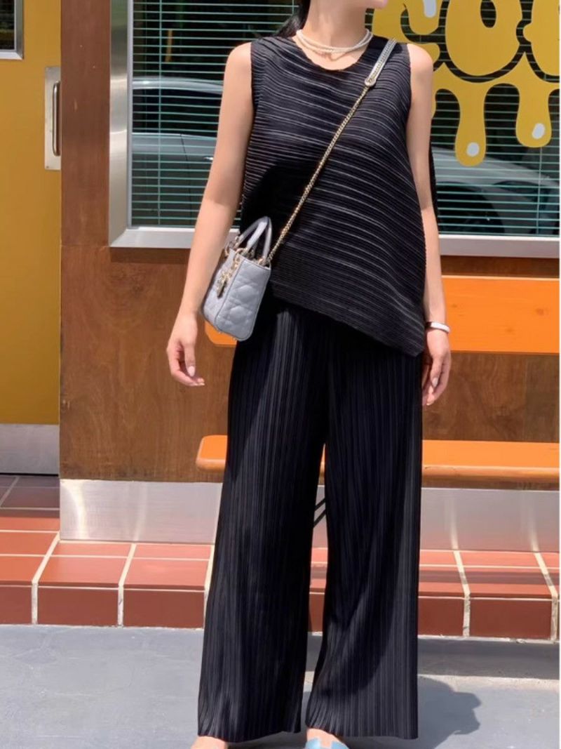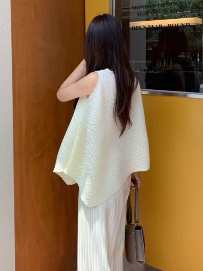 予約 2color アシンメトリー トップス + ワイド パンツ セットアップ