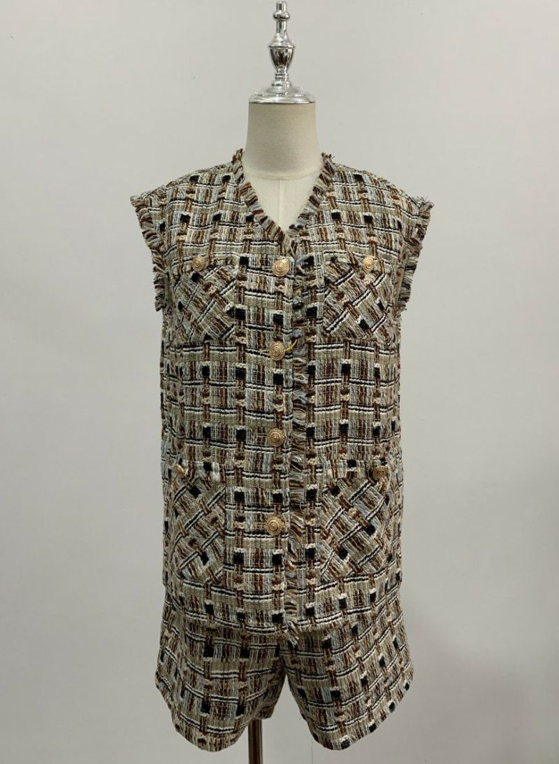 予約 ツイード ジレ+ ショートパンツ セットアップ