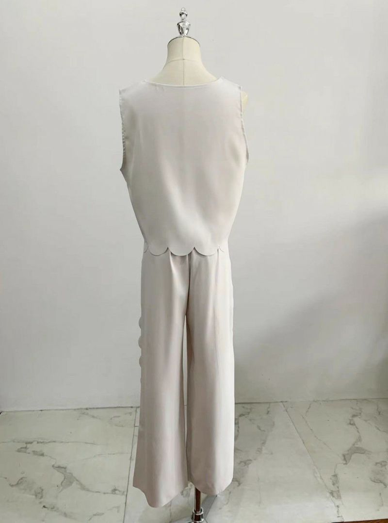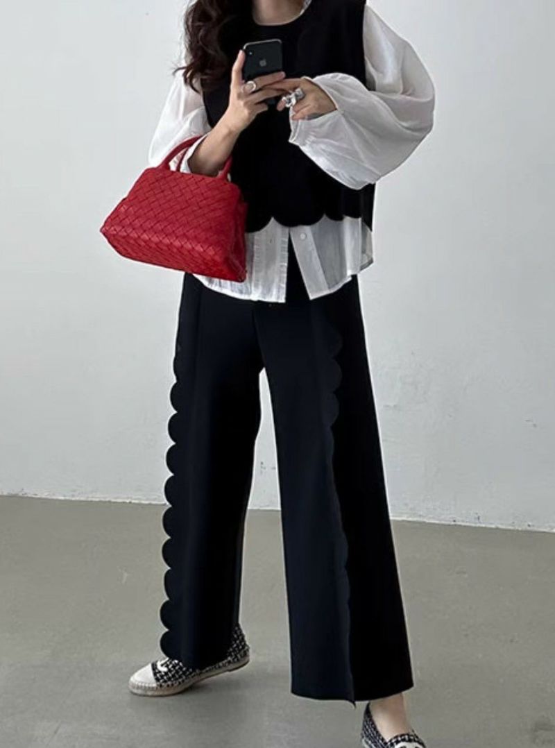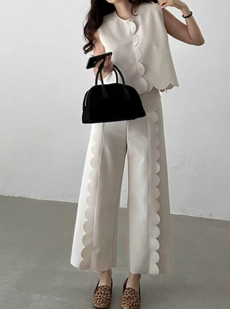 予約 スカラップ トップス ストレートパンツ セットアップ