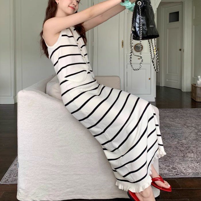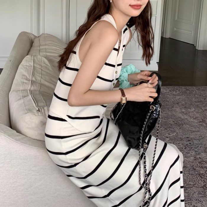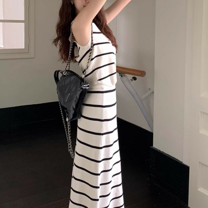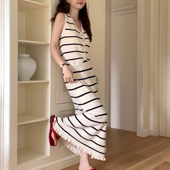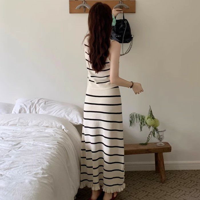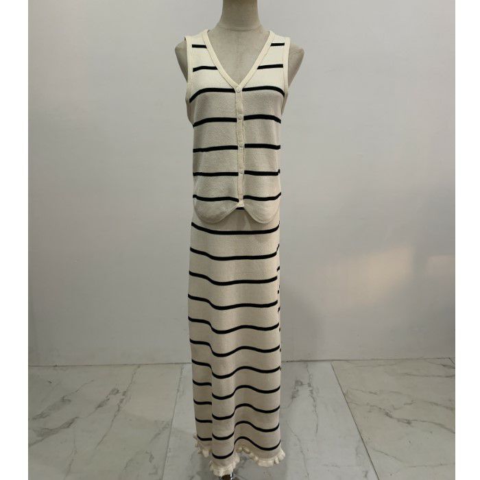 2set ボーダー ニット ジレ セットアップ タイト ロングスカート