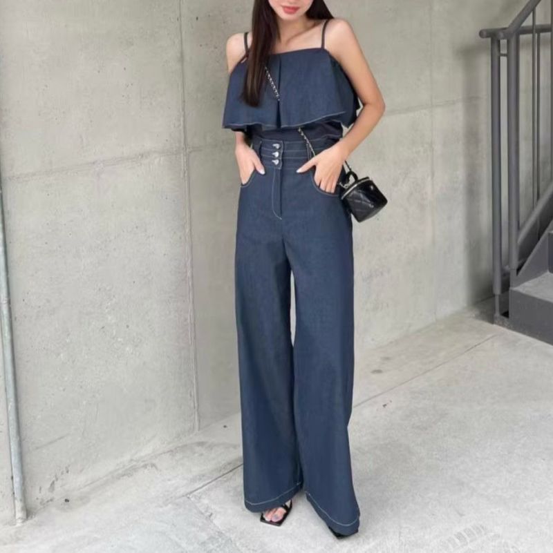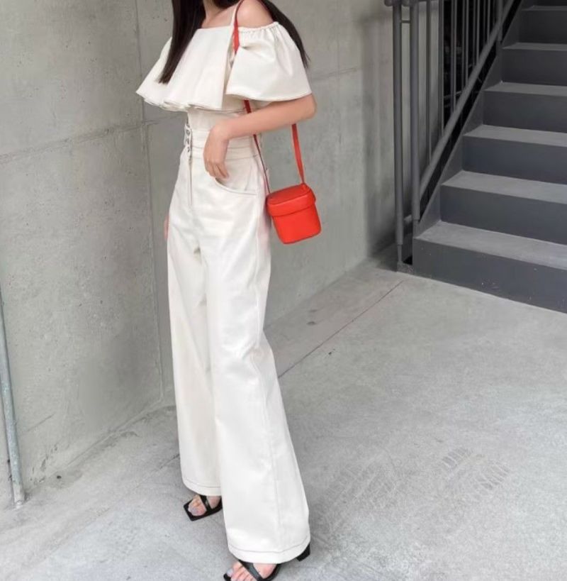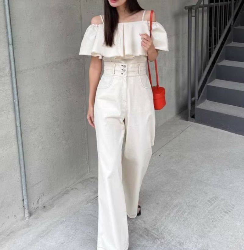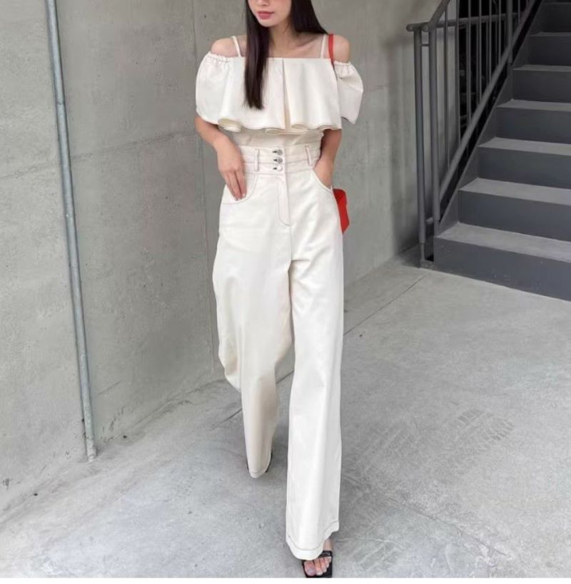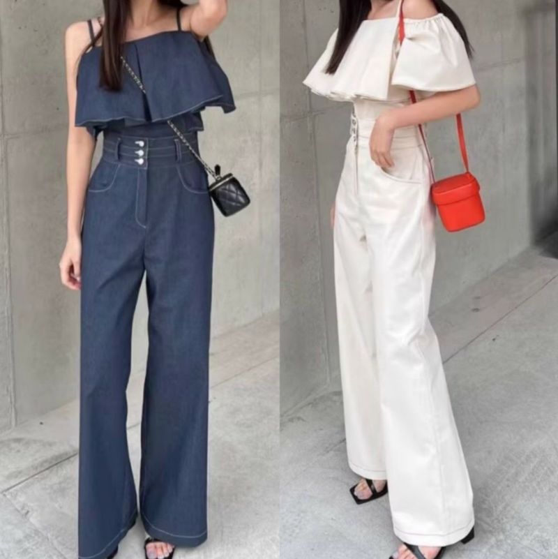 予約 2color 2set フレア切替 キャミソール + ハイウエスト ワイドパンツ