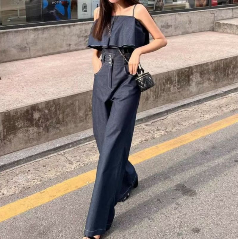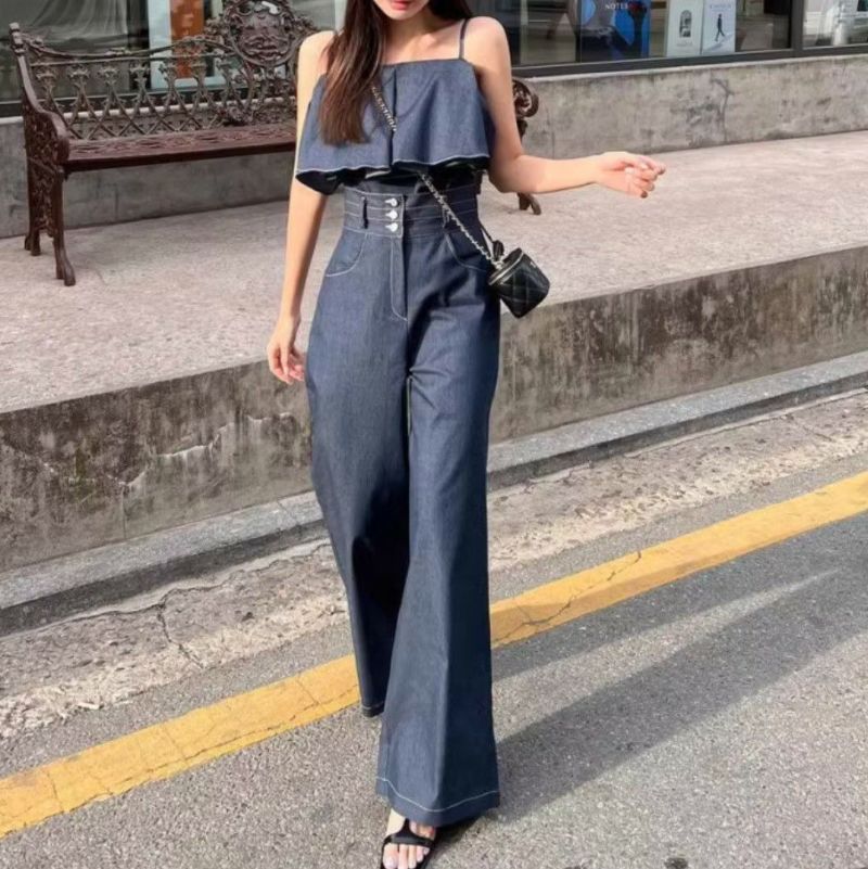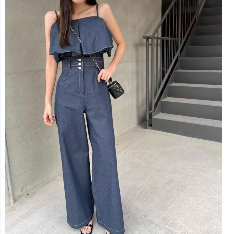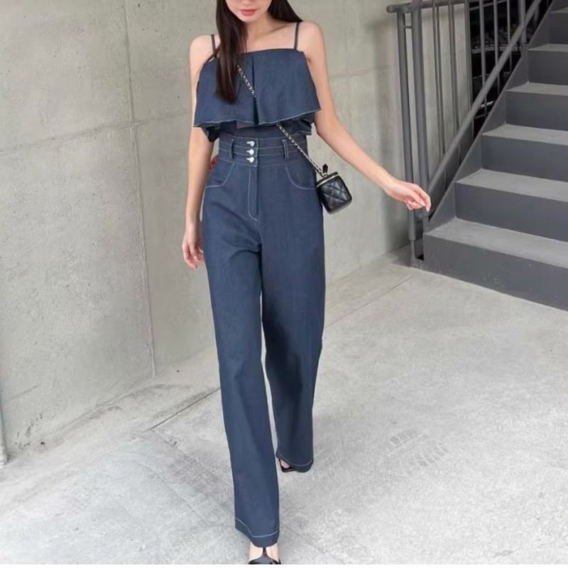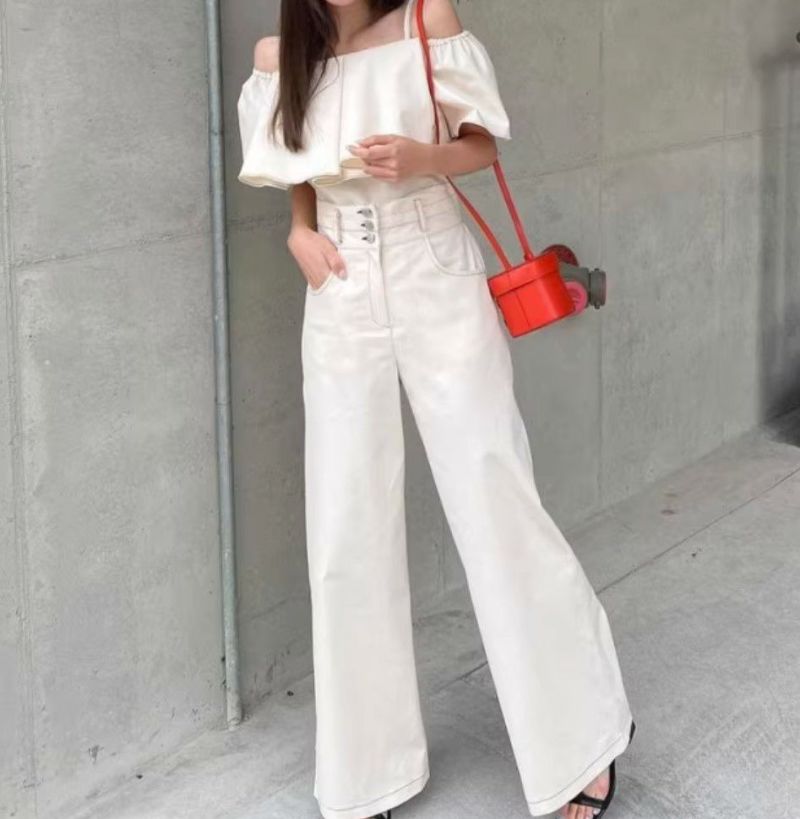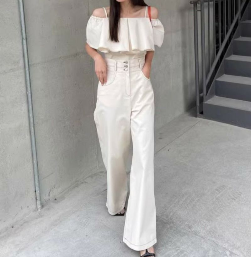 予約 2color 2set フレア切替 キャミソール + ハイウエスト ワイドパンツ