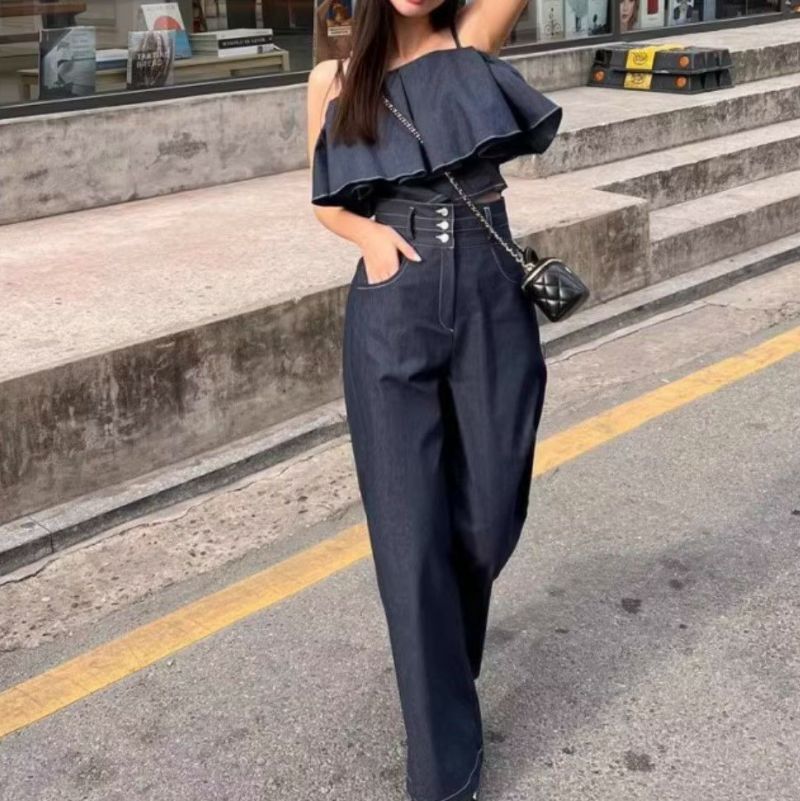フレアが可愛いデニムライク セットアップ