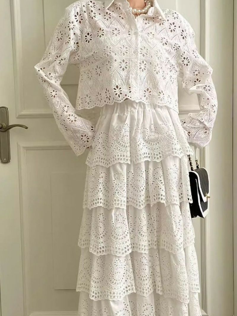 予約 2set カットワーク シャツ ➕ ティアード スカート