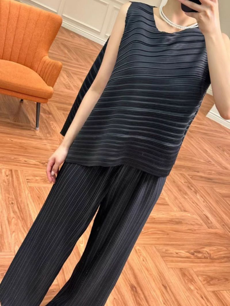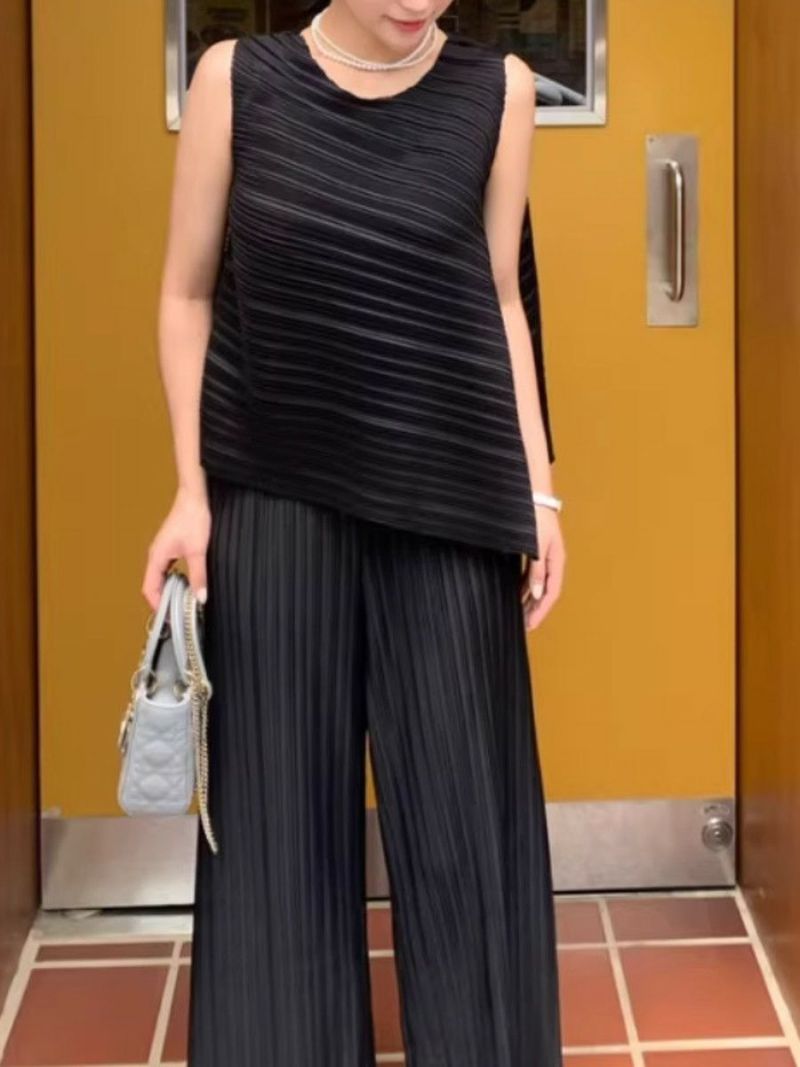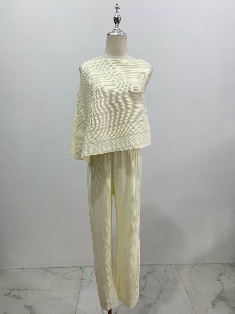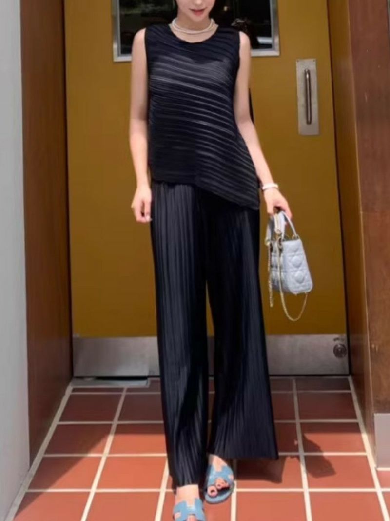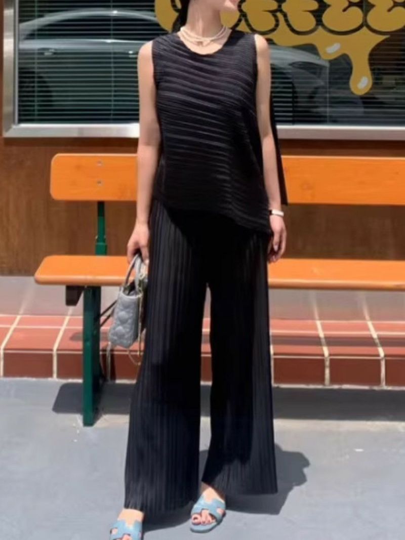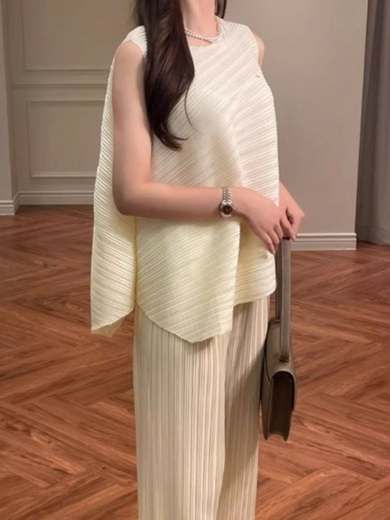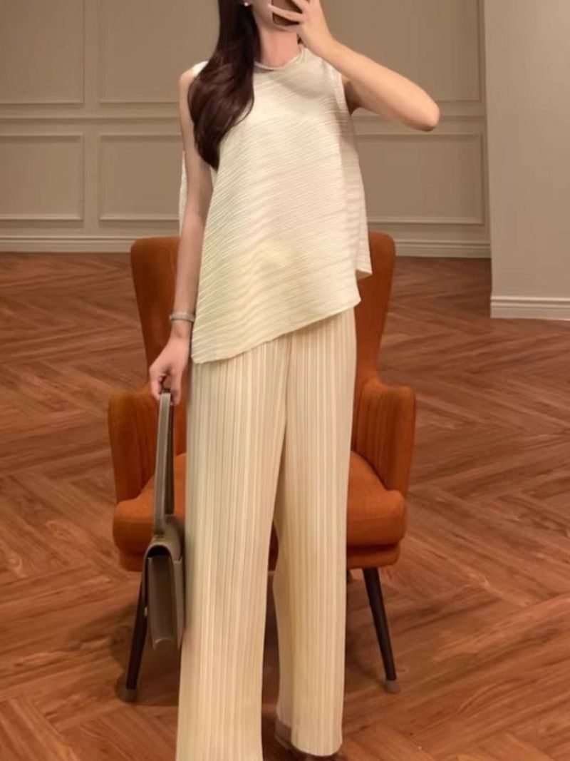 予約 2color アシンメトリー トップス + ワイド パンツ セットアップ