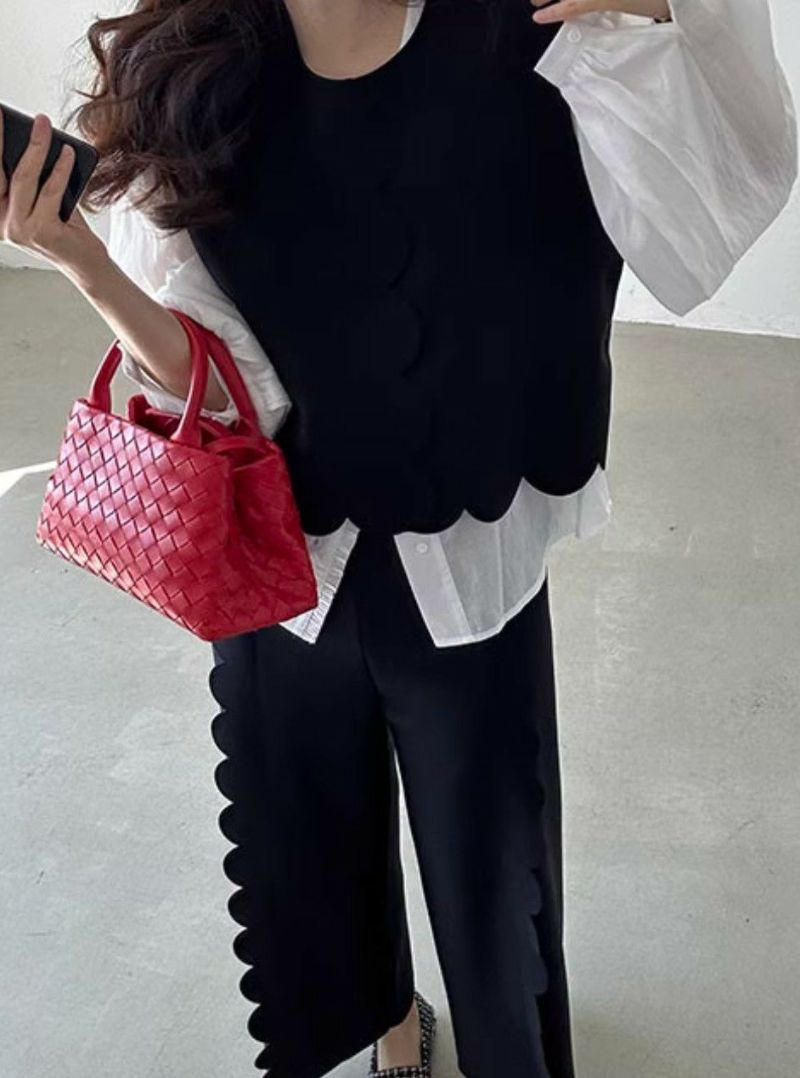 予約 スカラップ トップス ストレートパンツ セットアップ