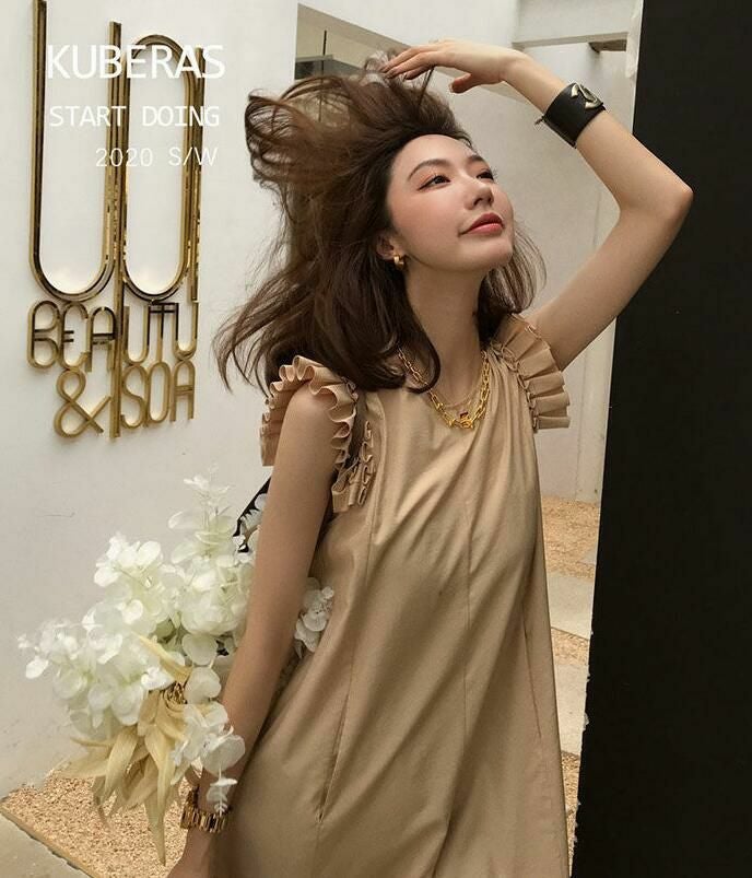 一部即納 オリジナル * 8color 袖フリル Aライン ミニ丈 ワンピース
