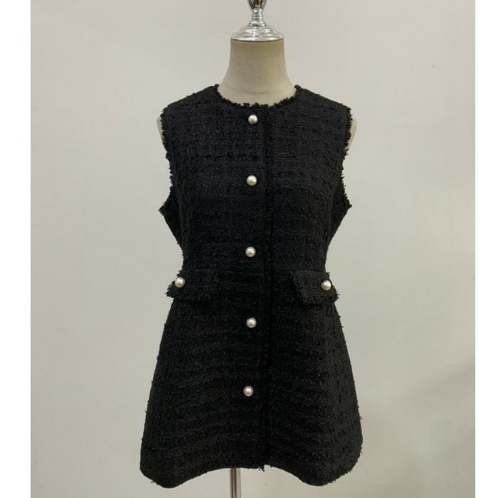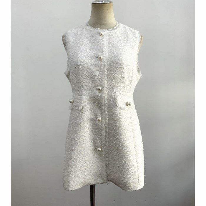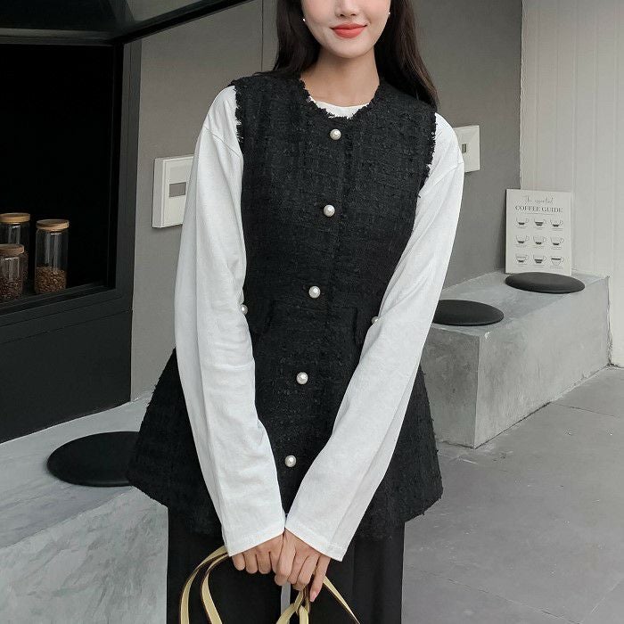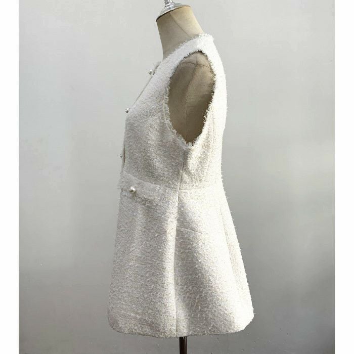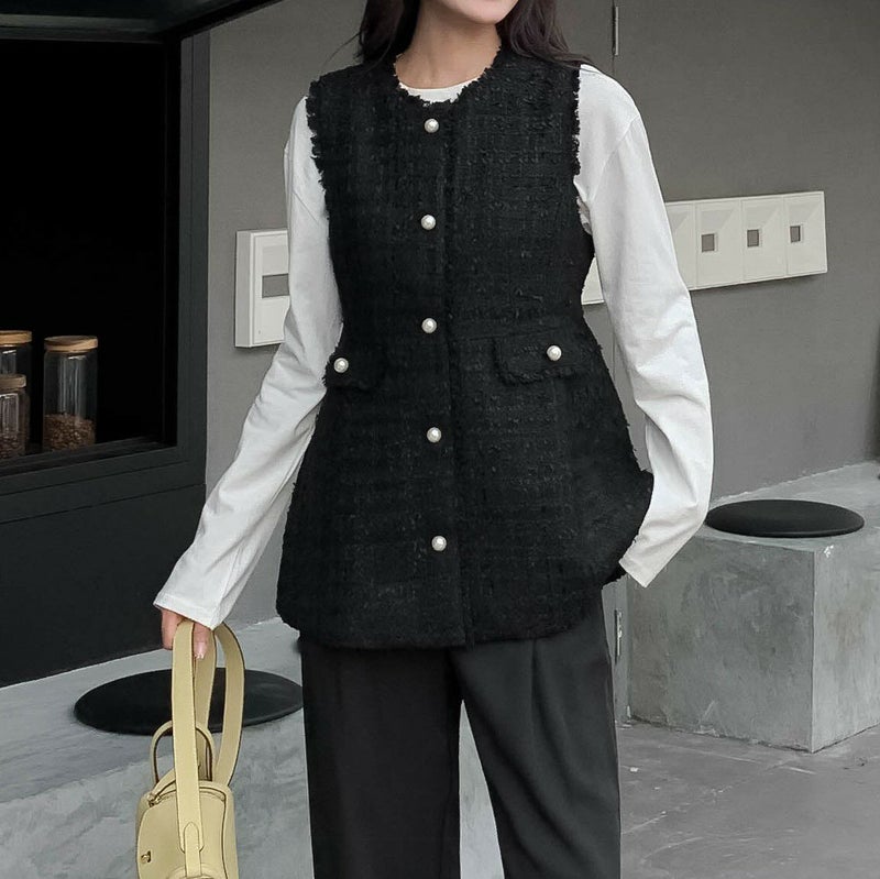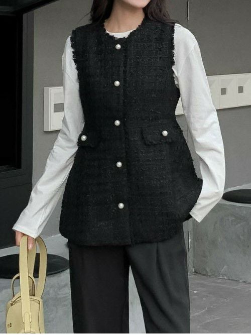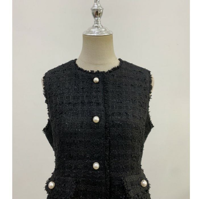 ツイード素材にパールボタンが可愛いベスト