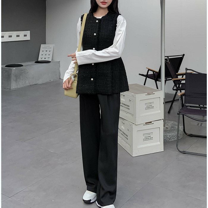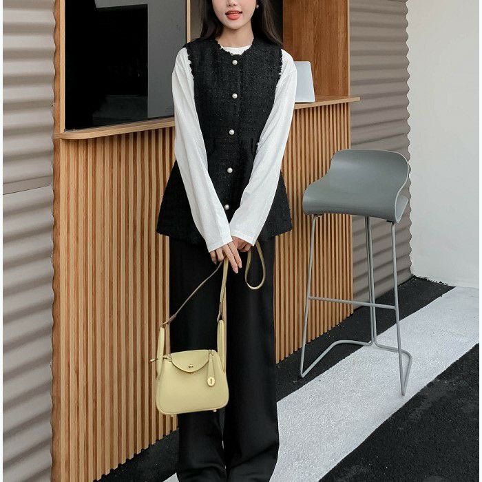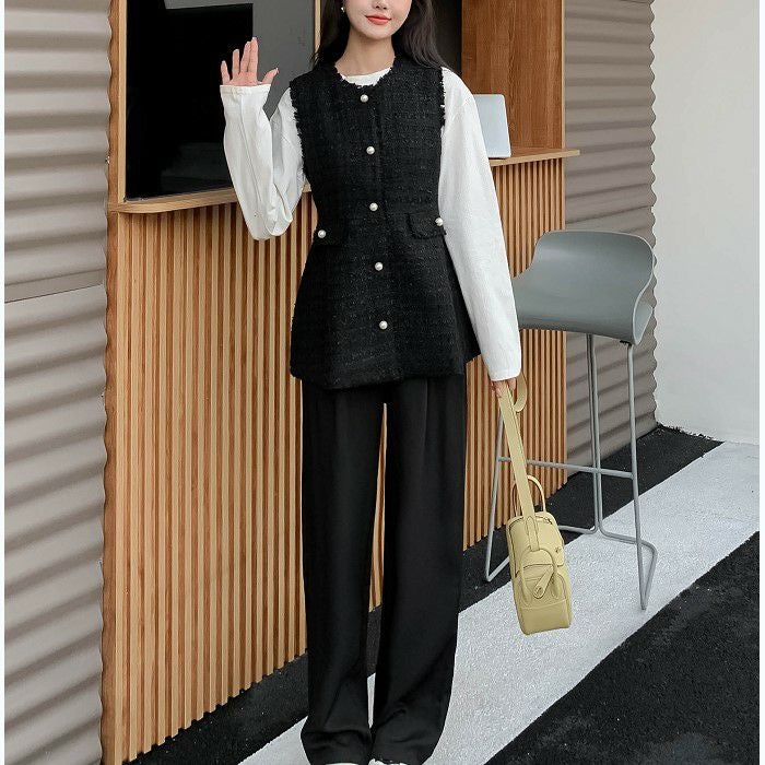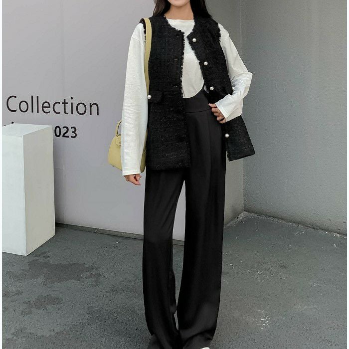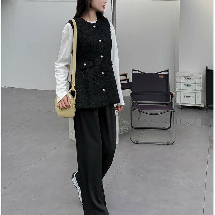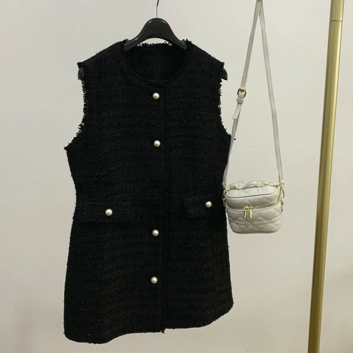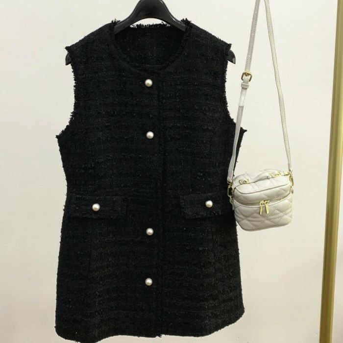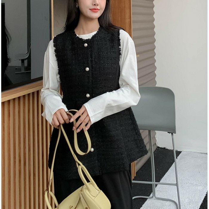 ツイード素材にパールボタンが可愛いベスト