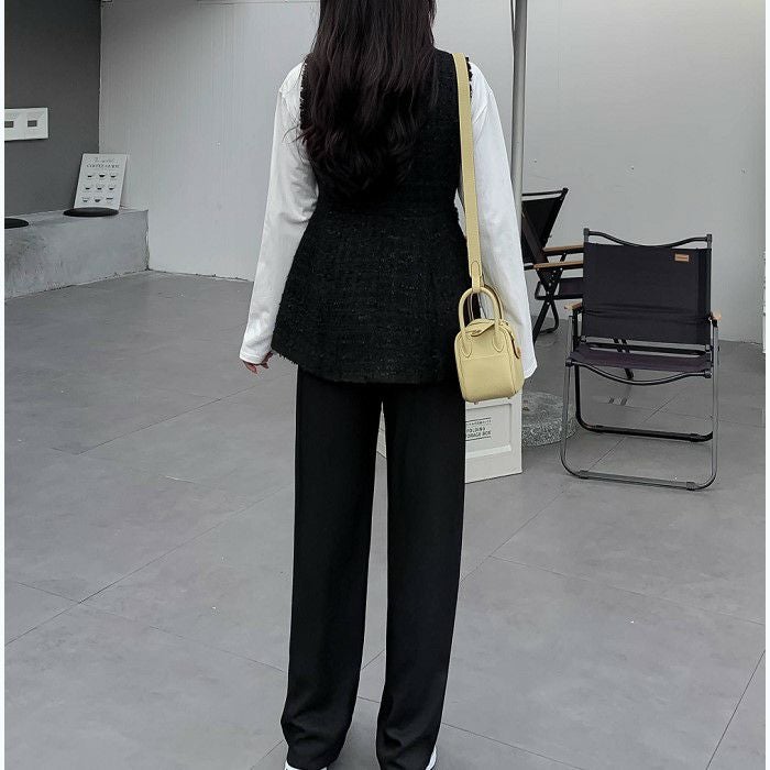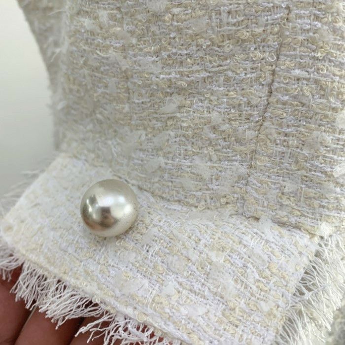 一部即納 2color ペプラム パール ボタン ツイード ジレ