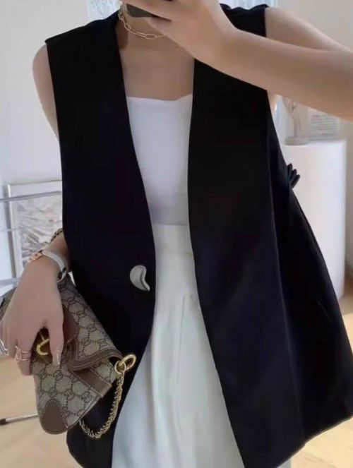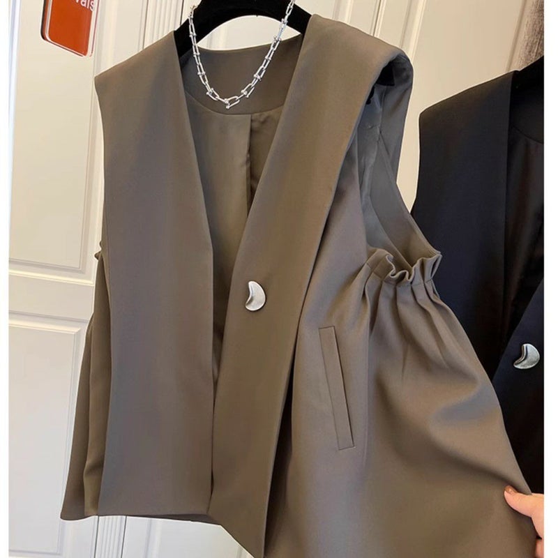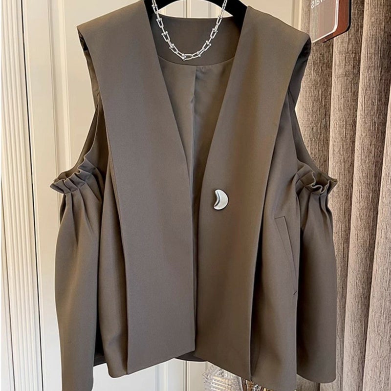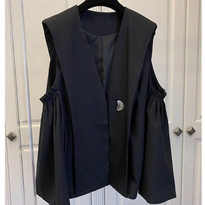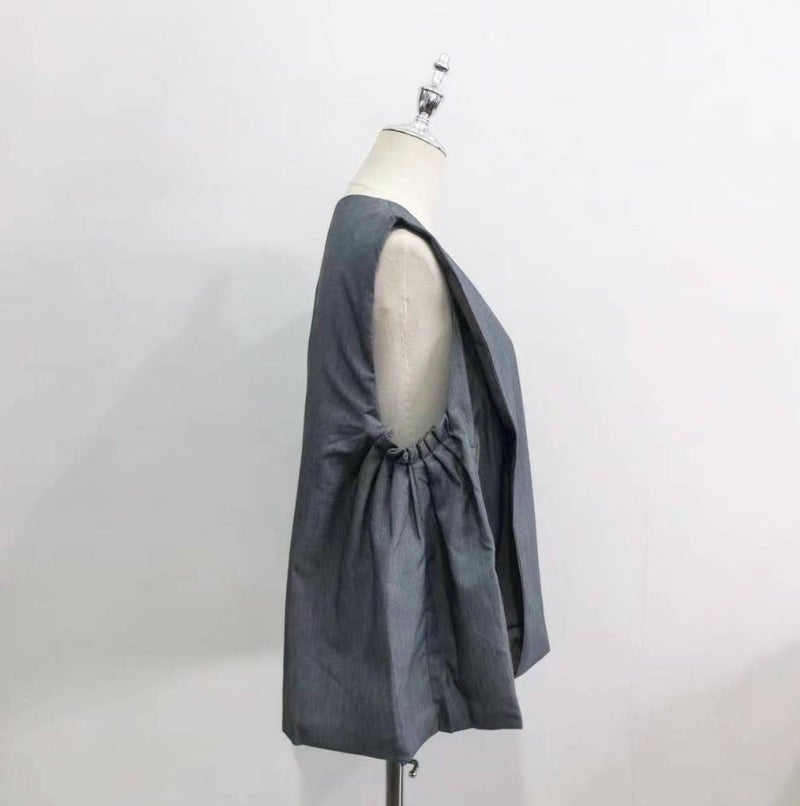 サイドのタックデザインがポイントのオープンテーラードジレ