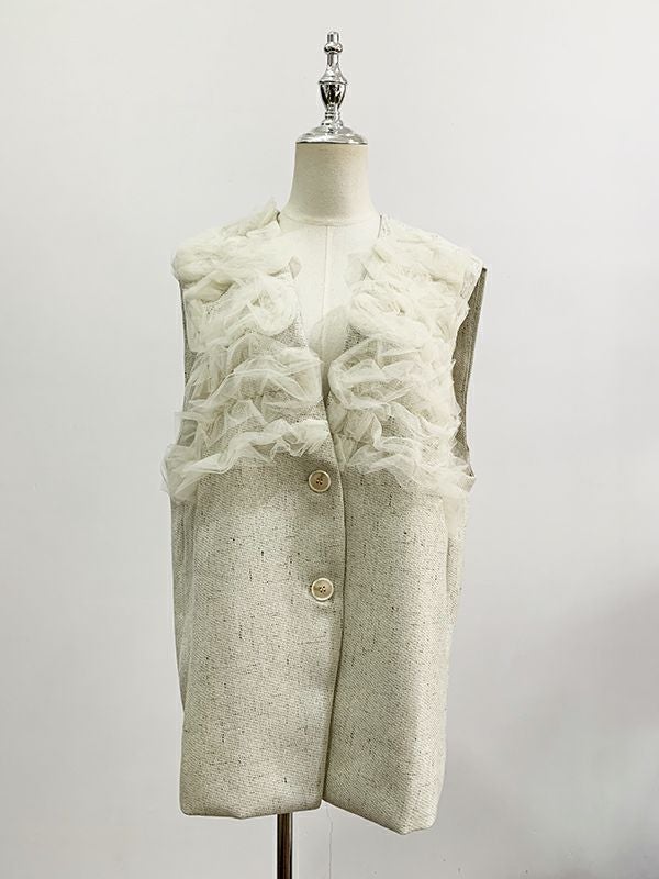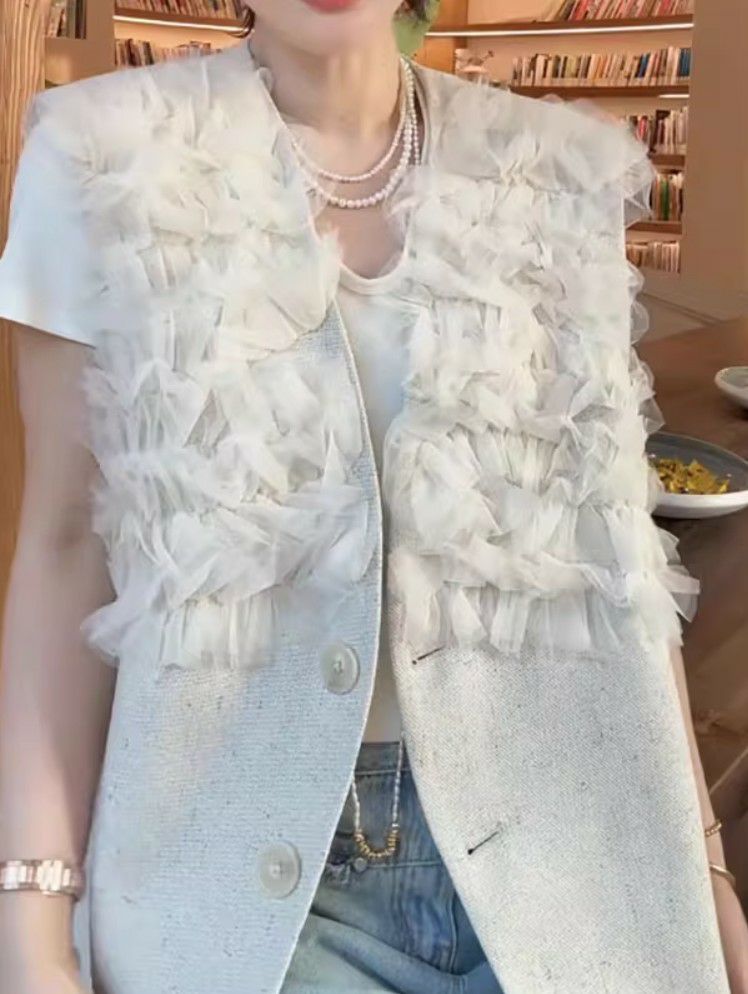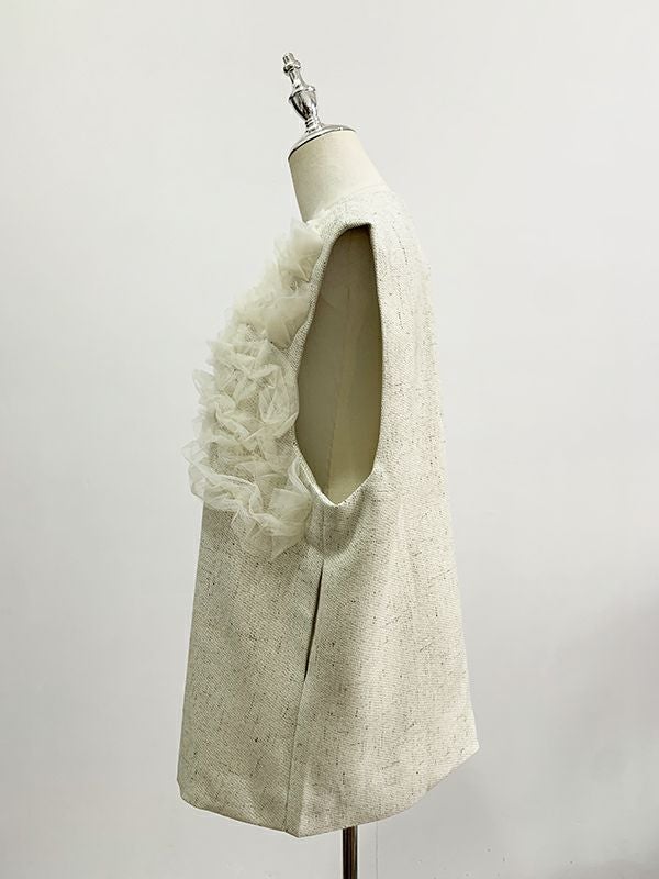 立体感のあるチュールを贅沢にあしらったロングジレ。