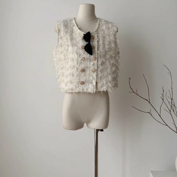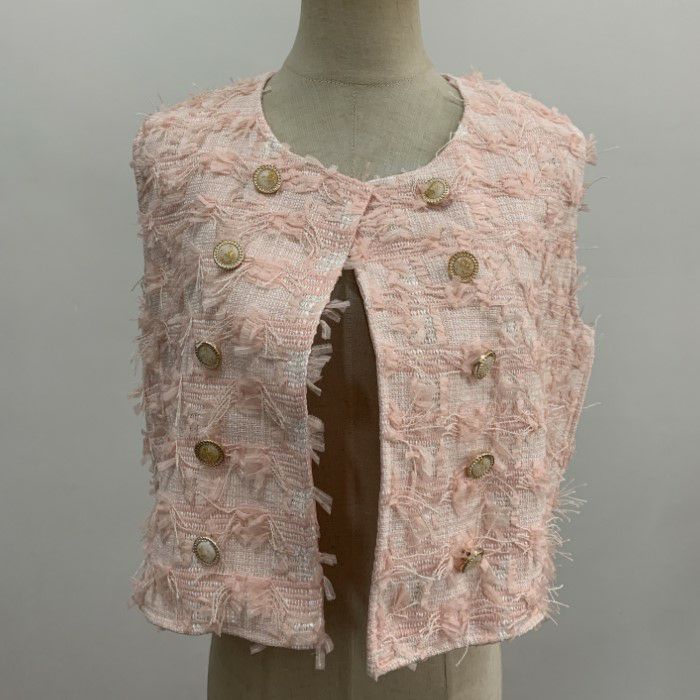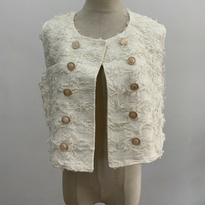 予約 2color フェザー ツイード ジレ ダブルボタン