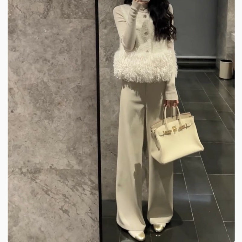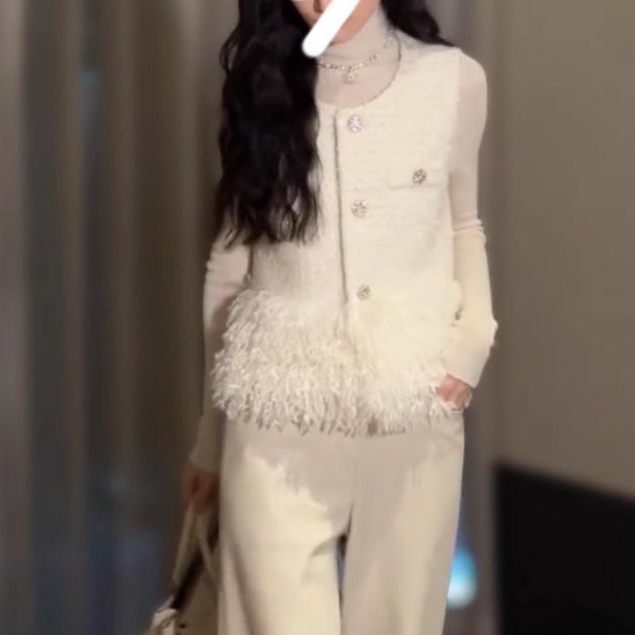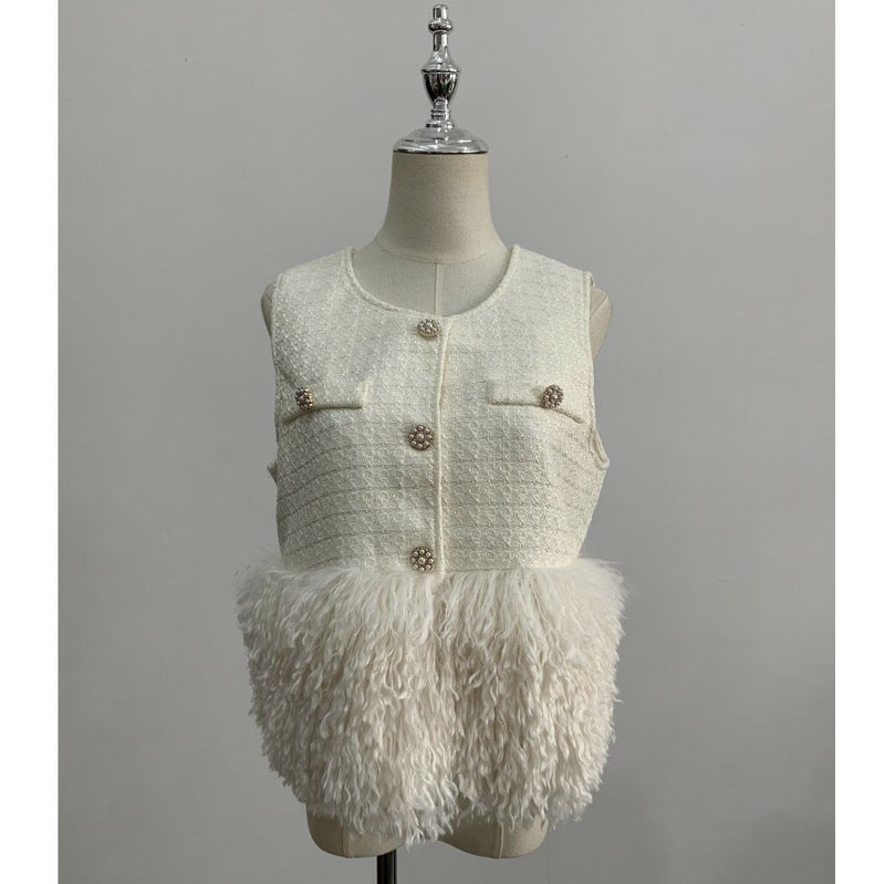 プードルみたいなフワフワフリンジがフェミニンなツイードジレ