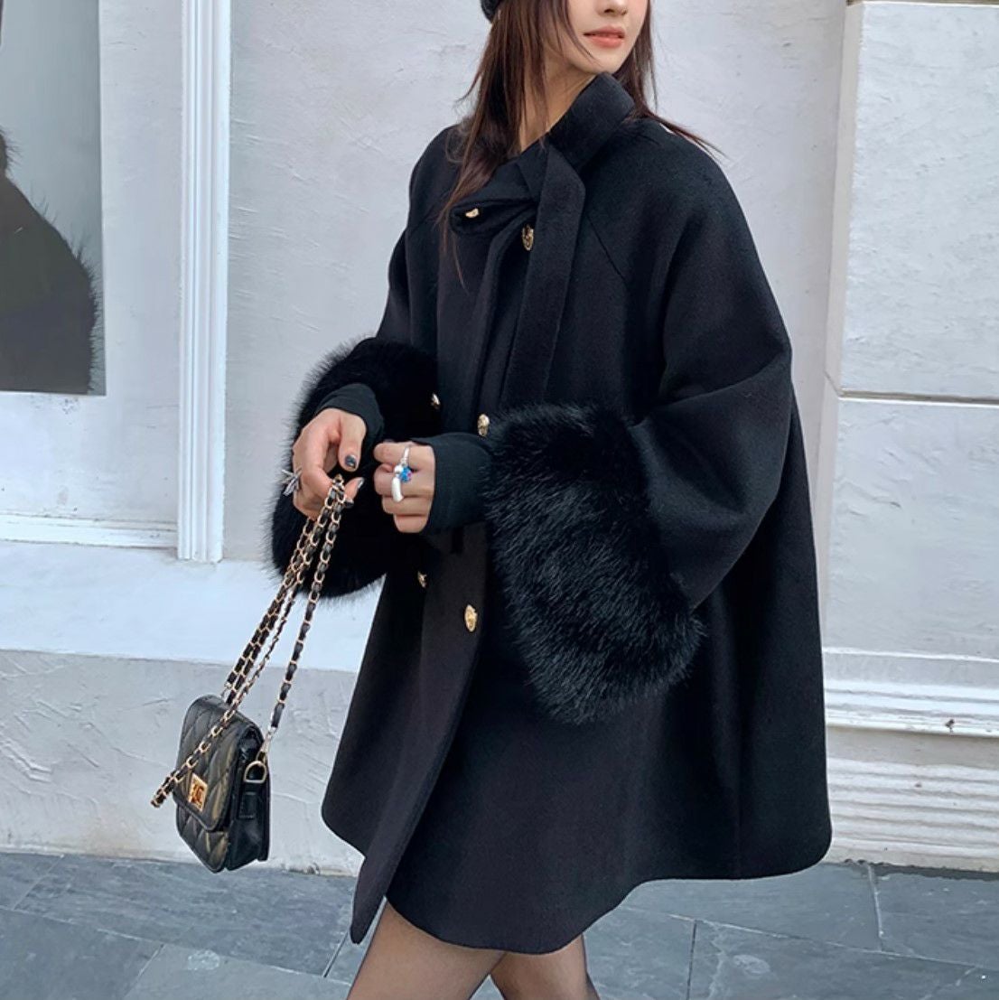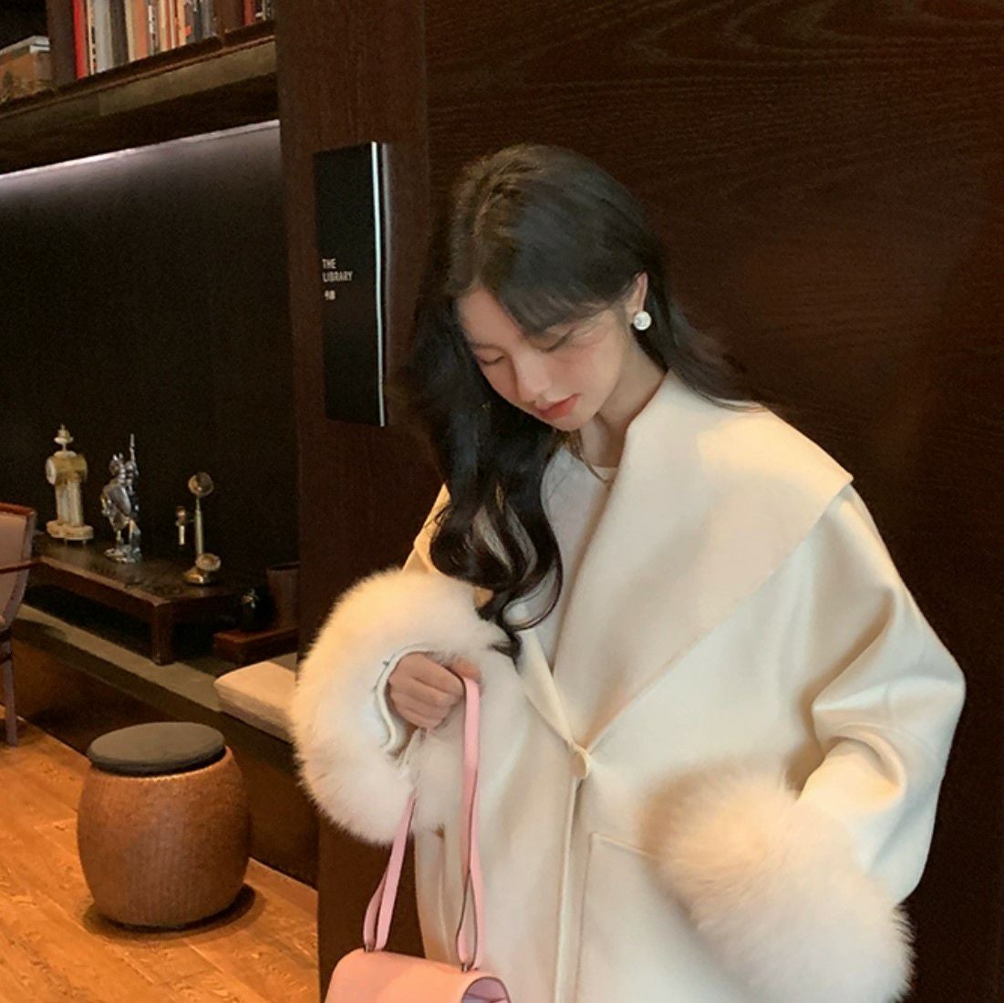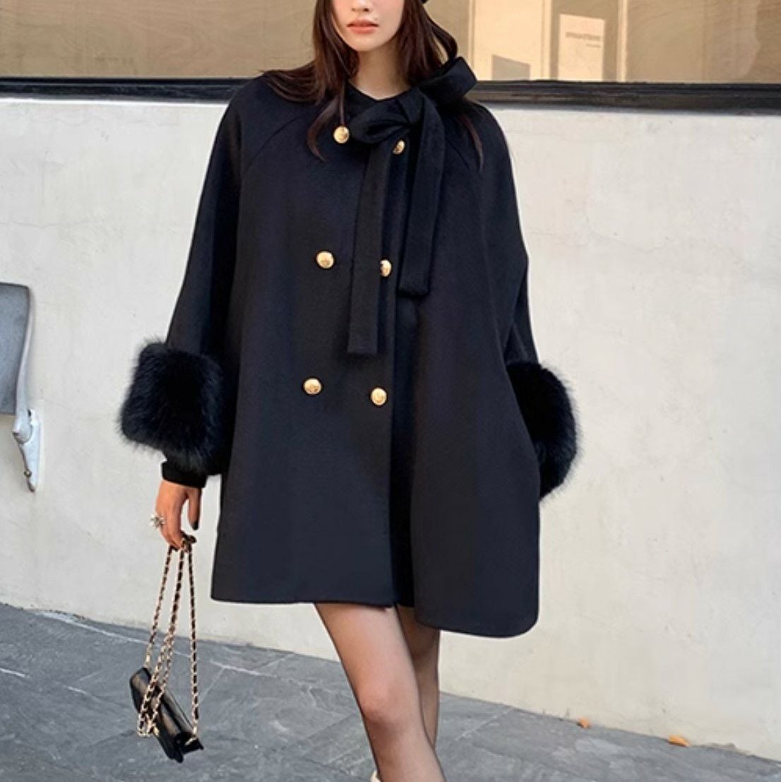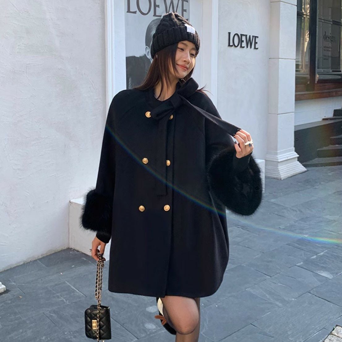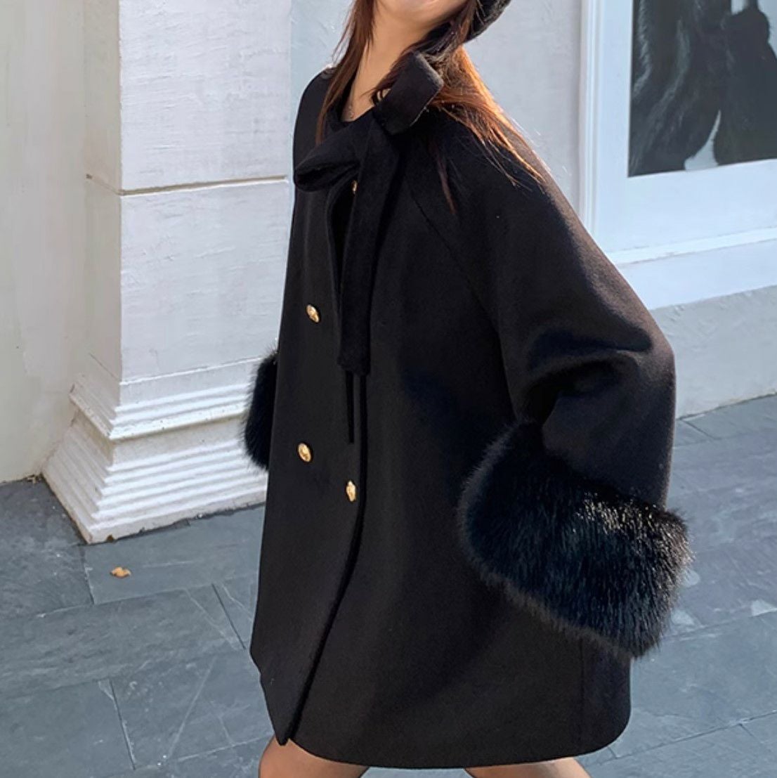 予約 4color リアルファー ウール フード コート 袖ファー type