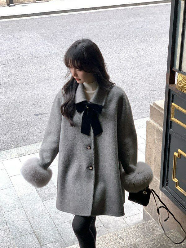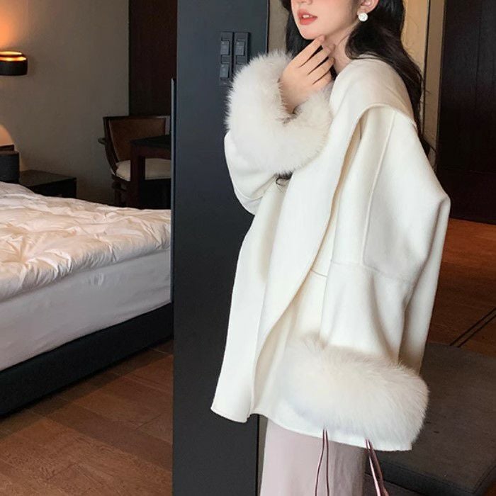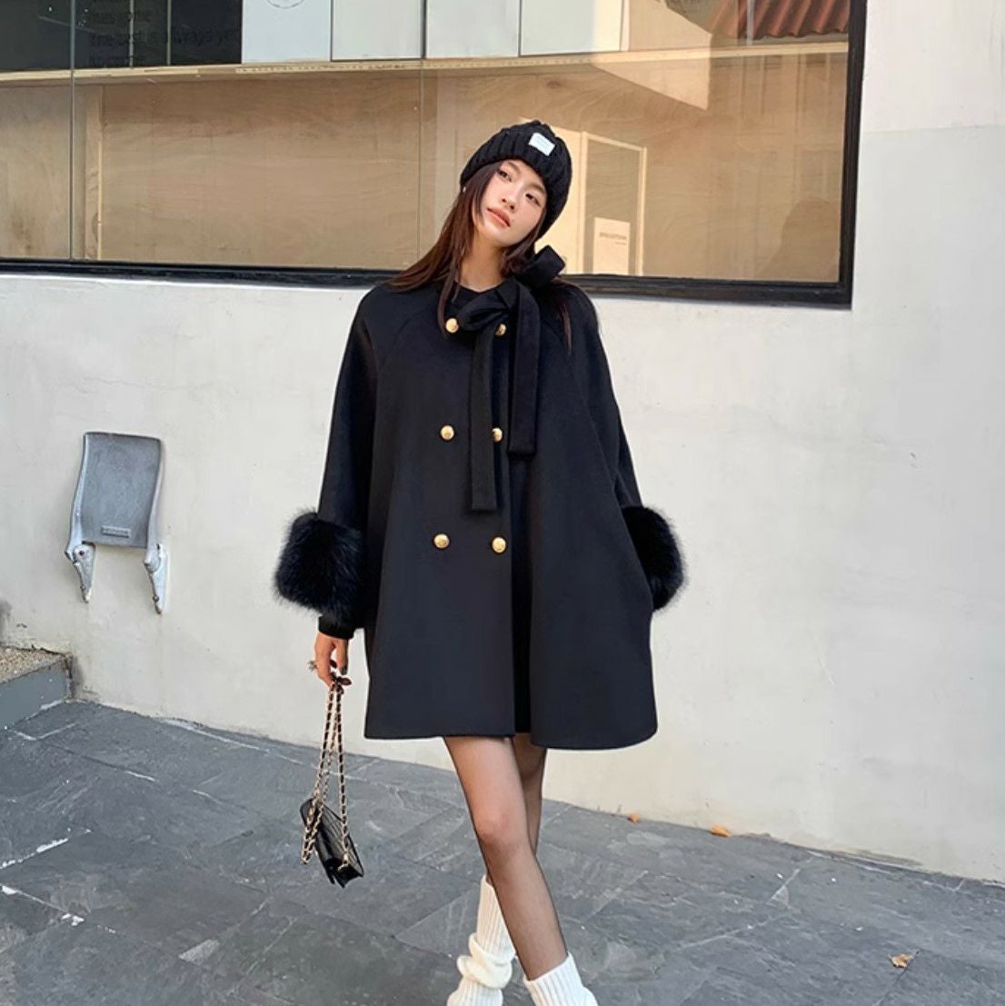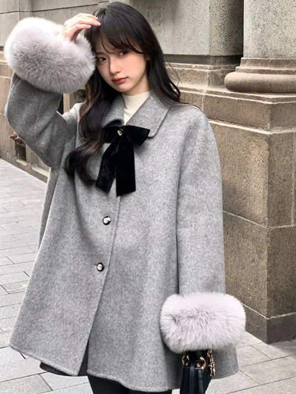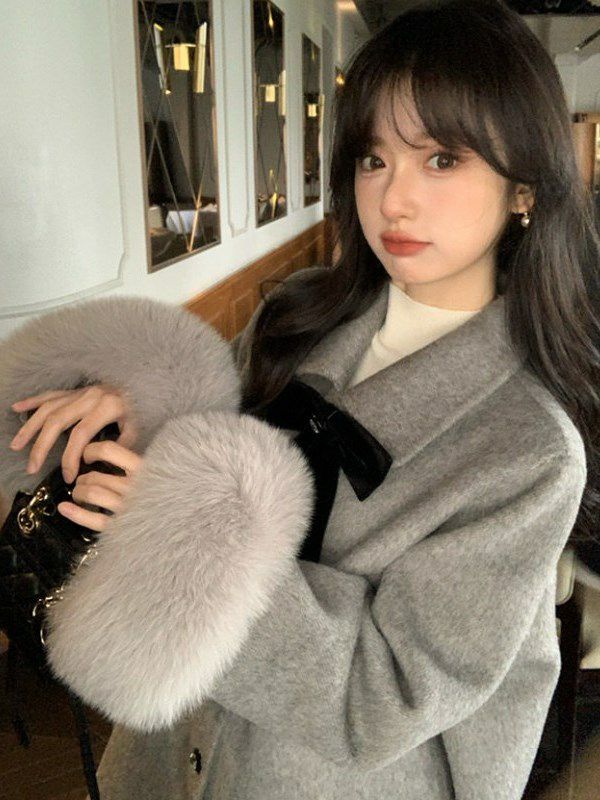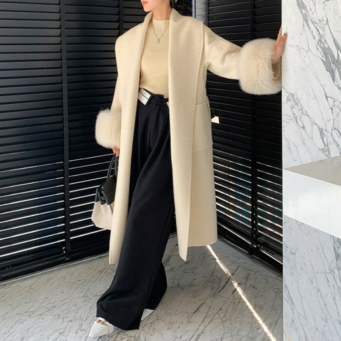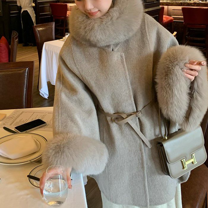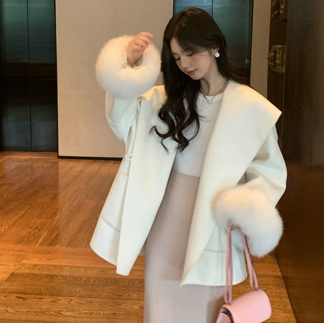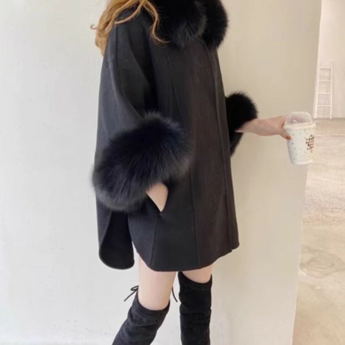 予約 4color リアルファー ウール フード コート 袖ファー type
