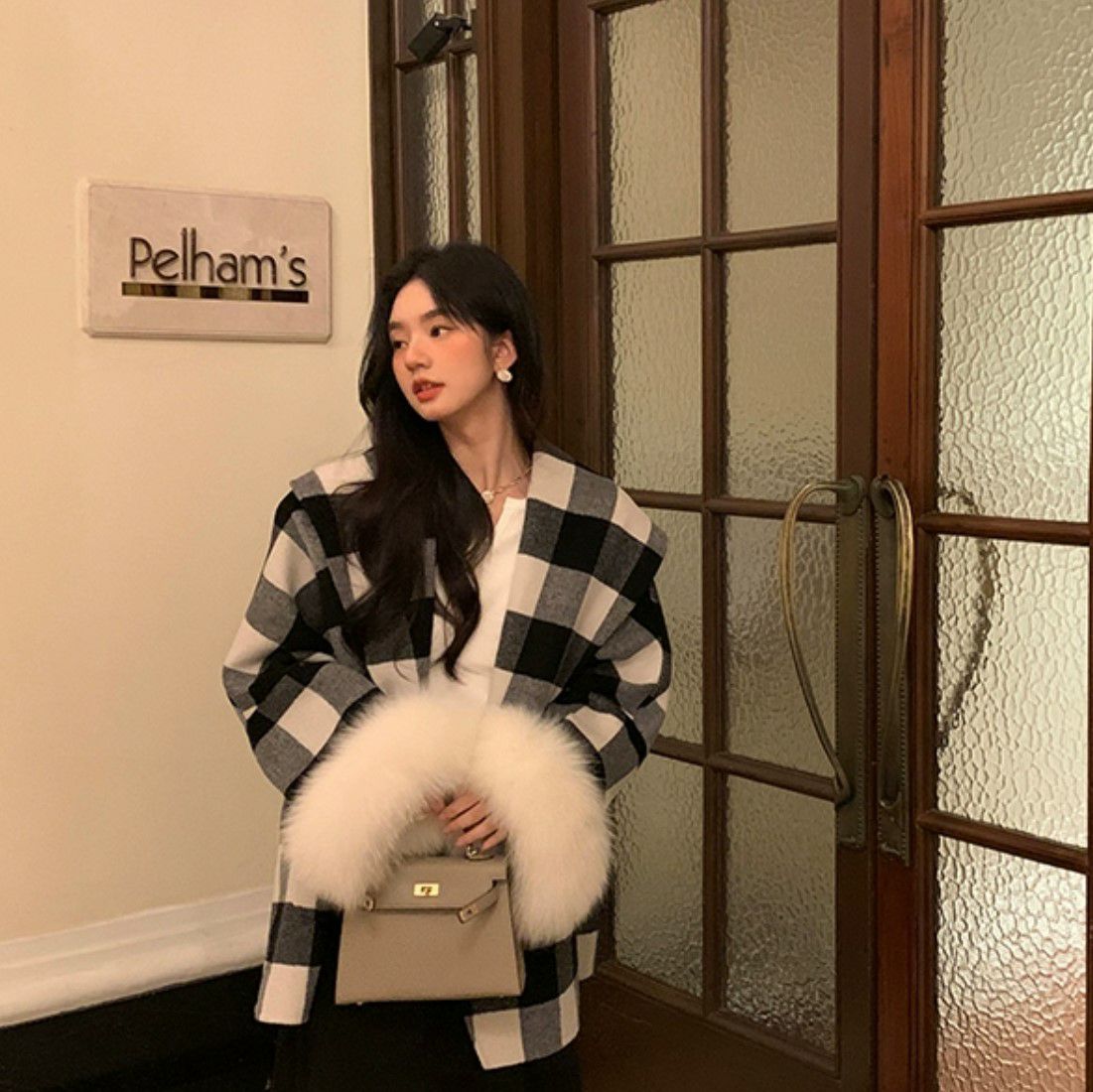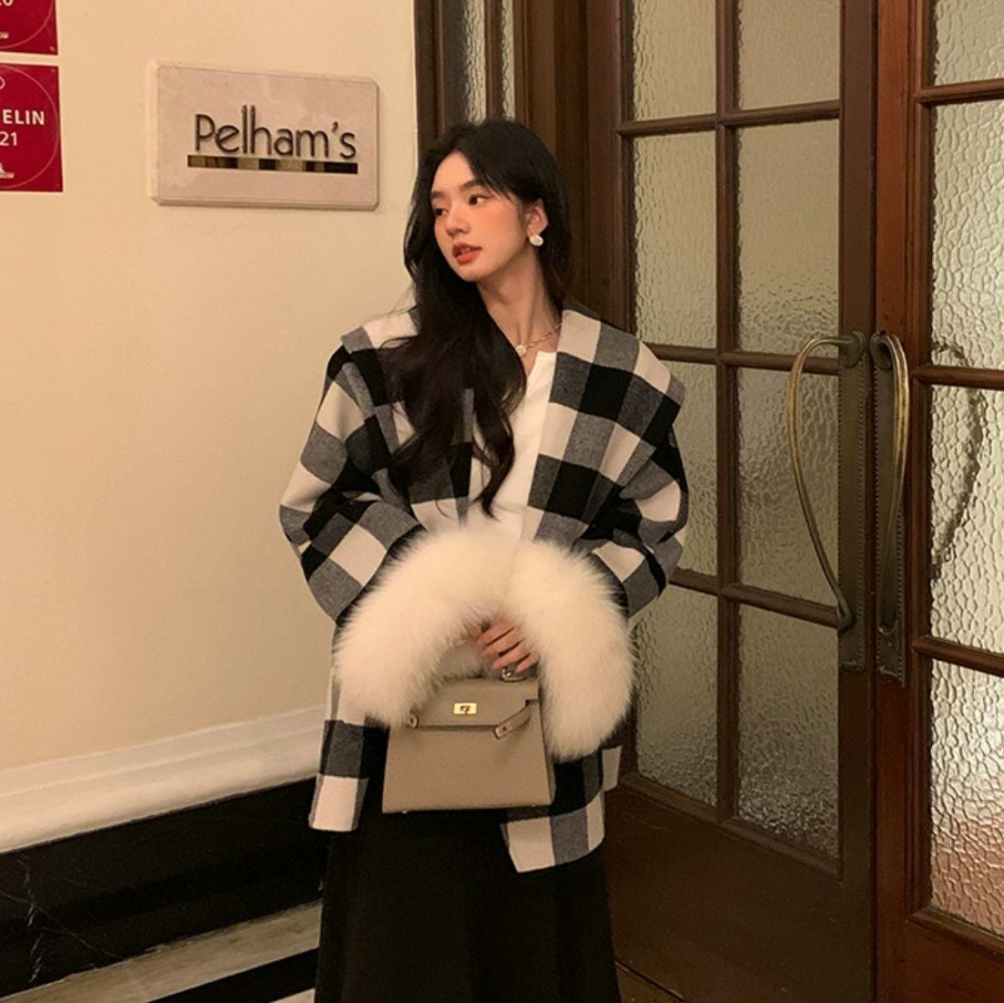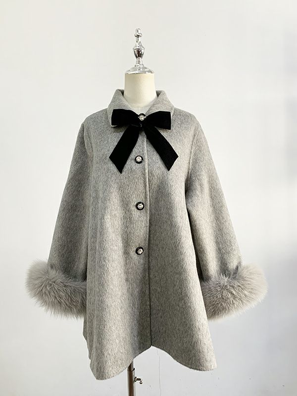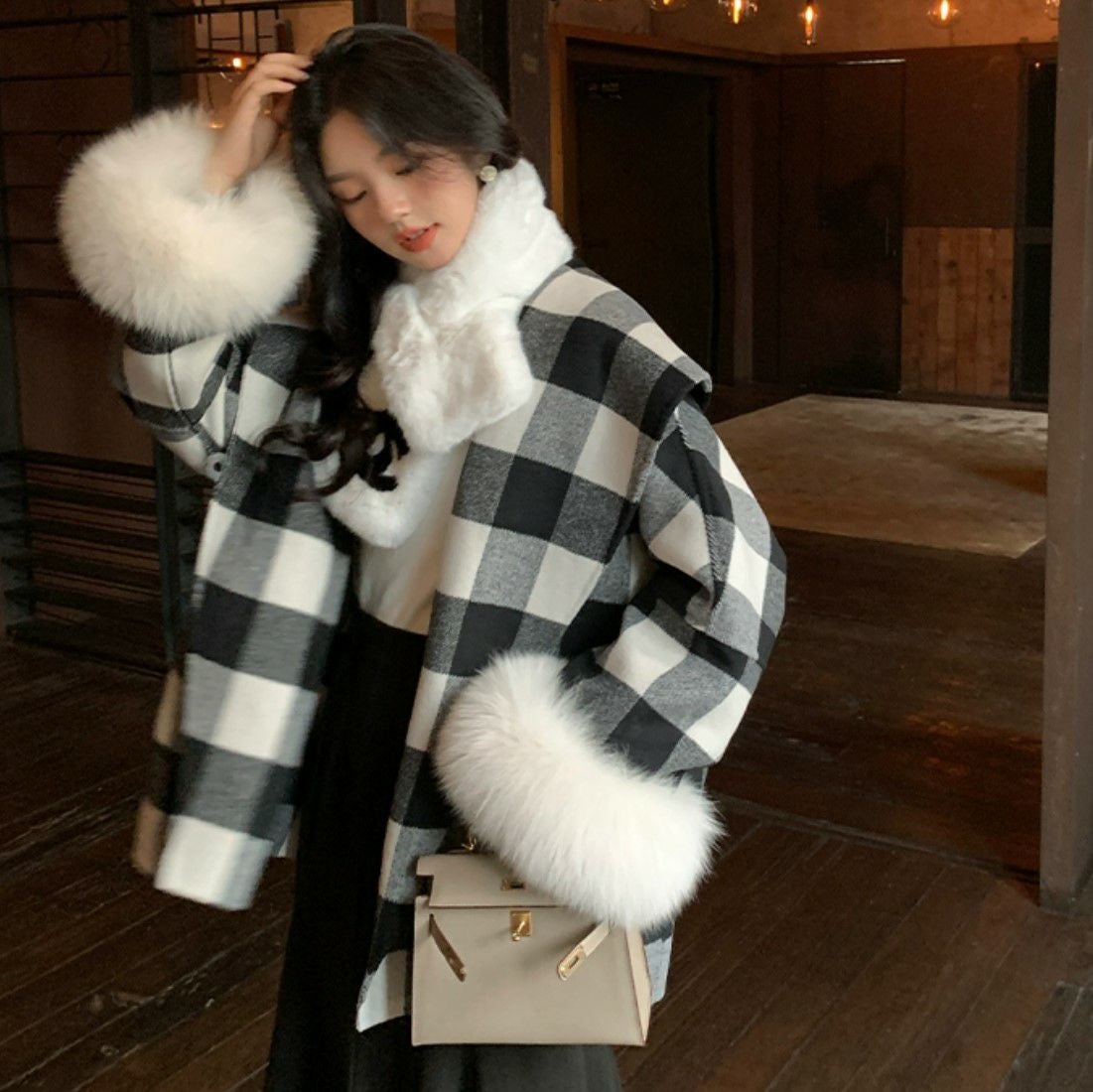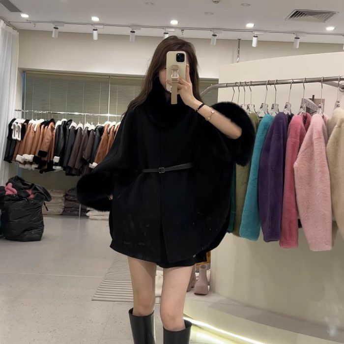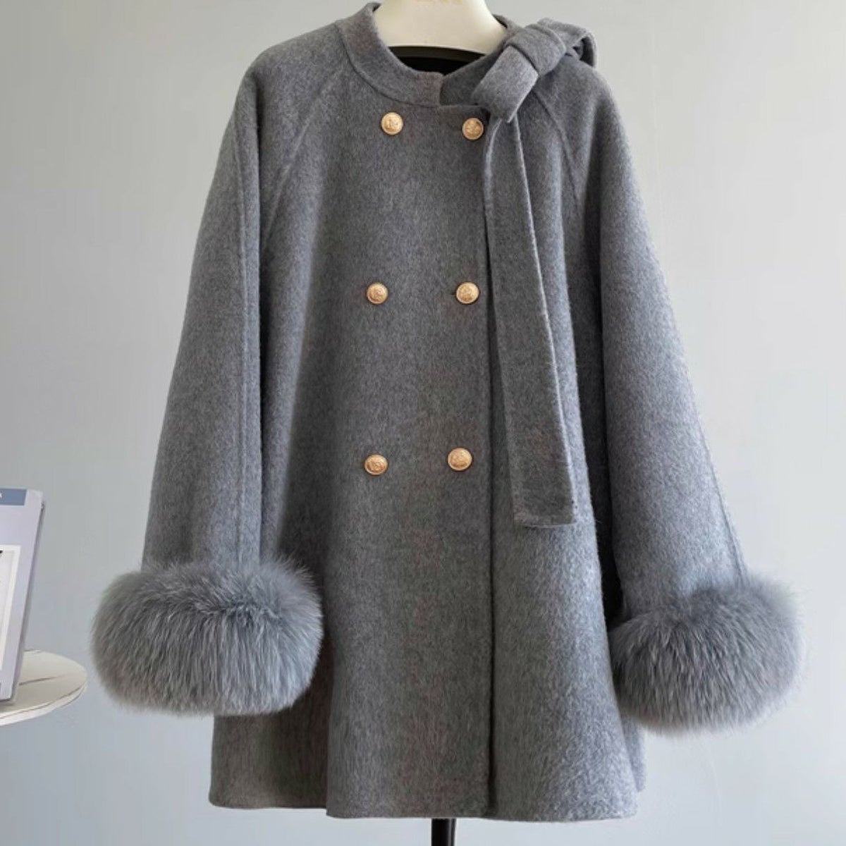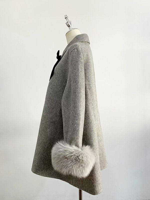 予約 4color リアルファー ウール フード コート 袖ファー type