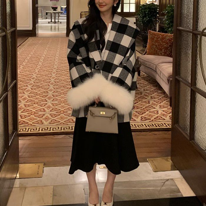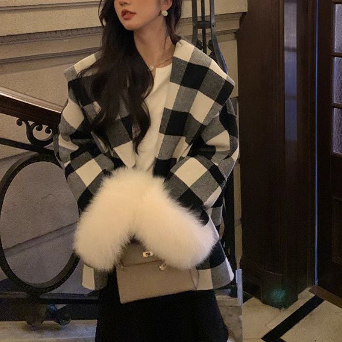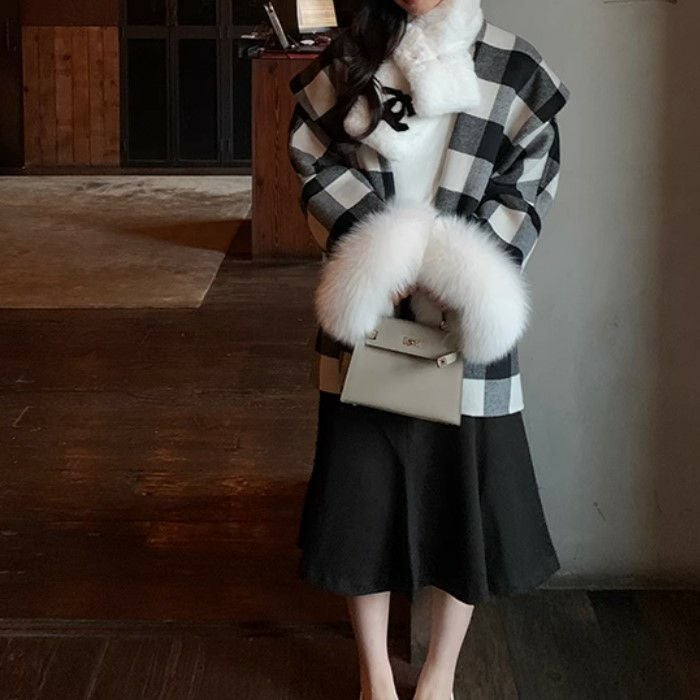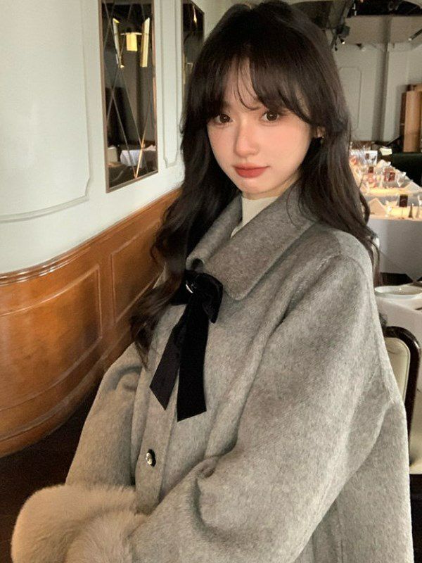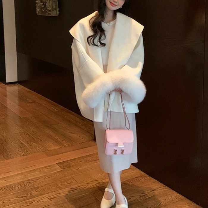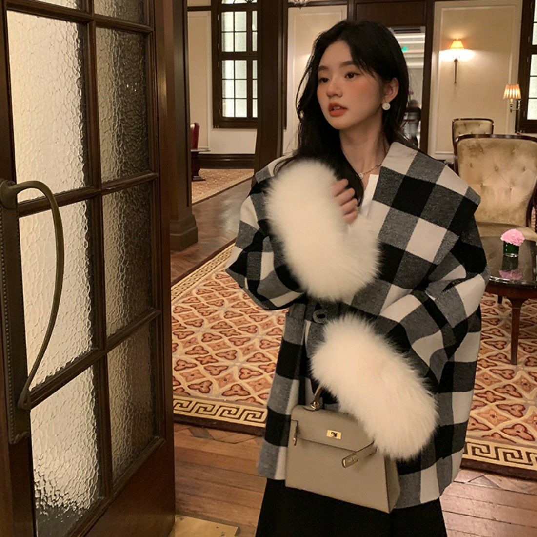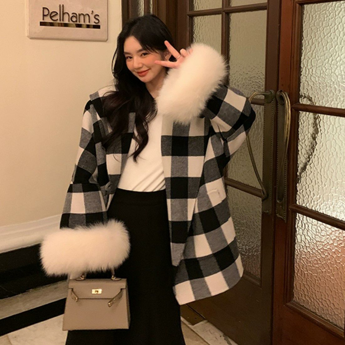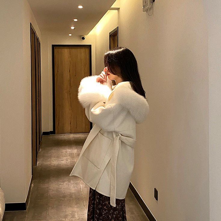 予約 4color リアルファー ウール フード コート 袖ファー type