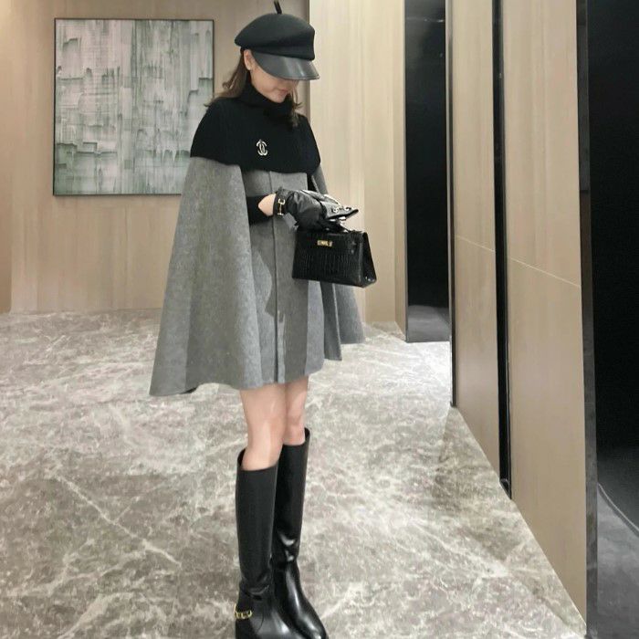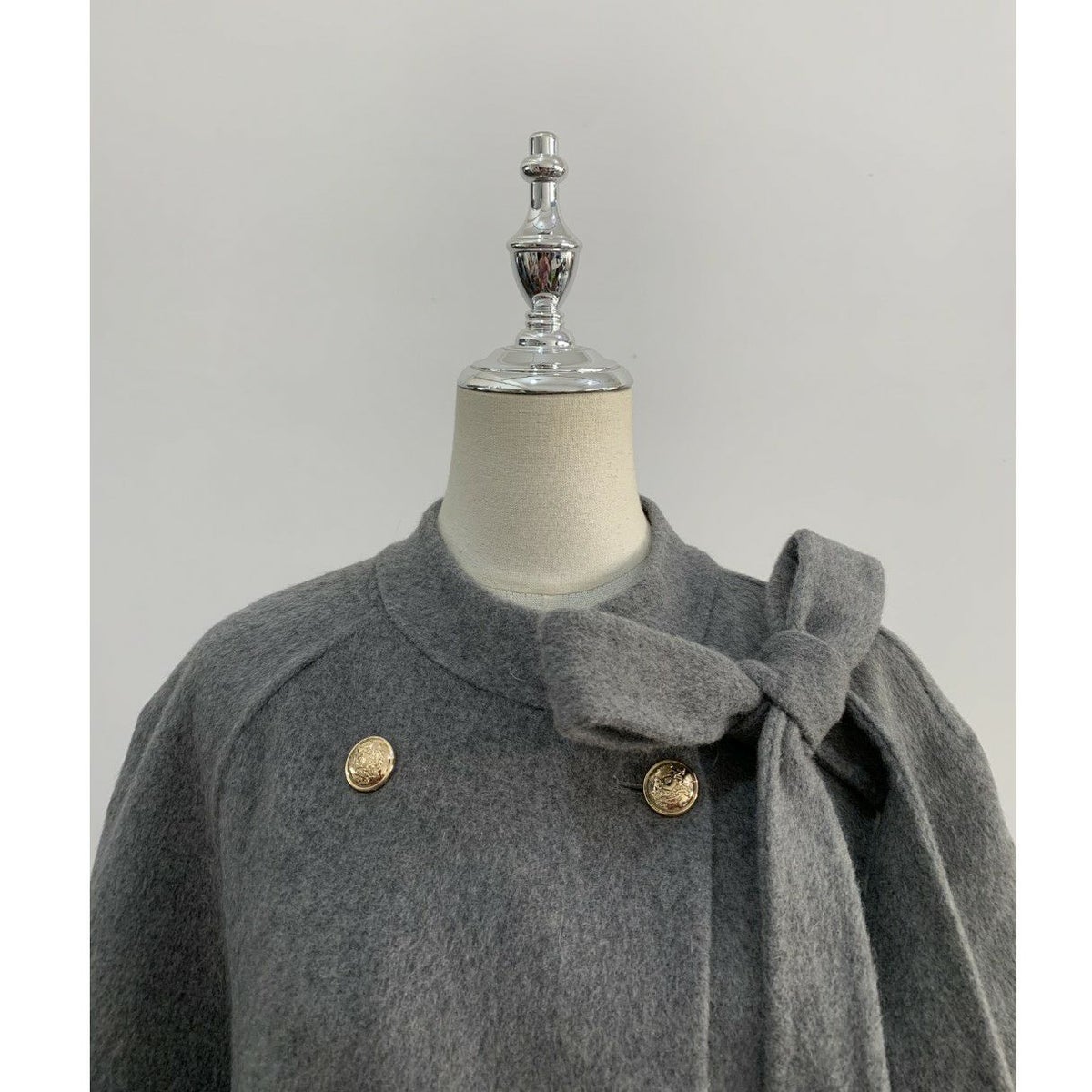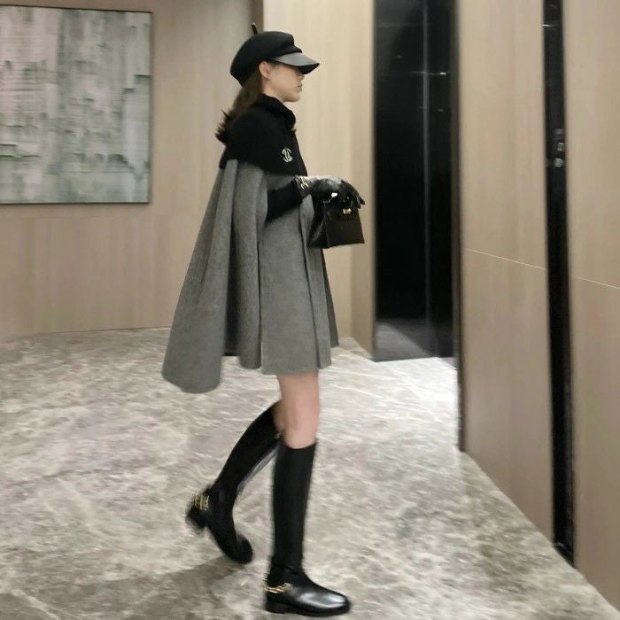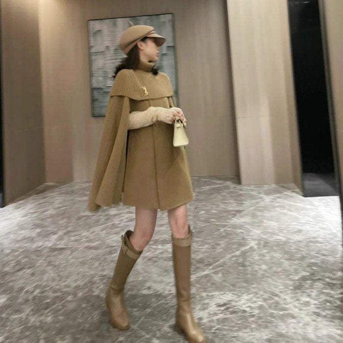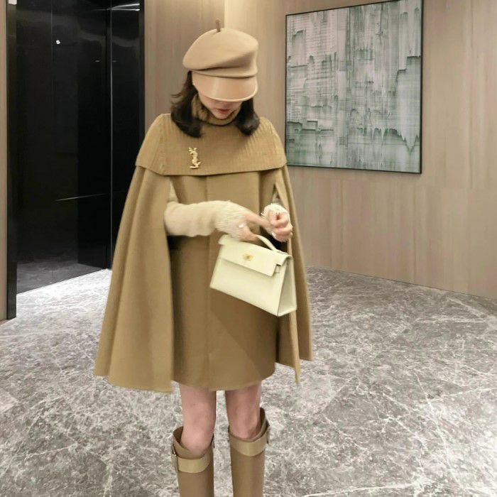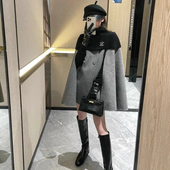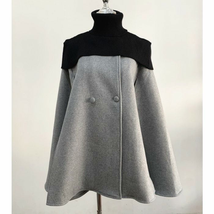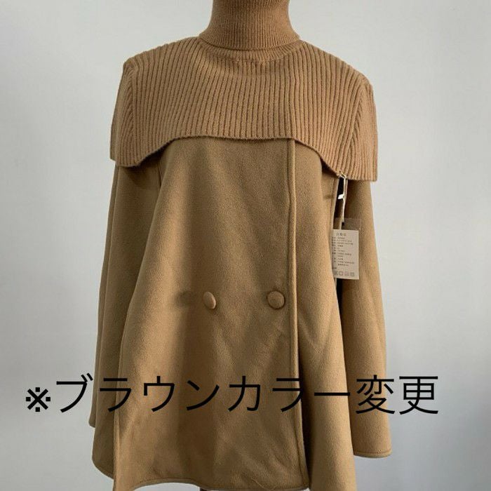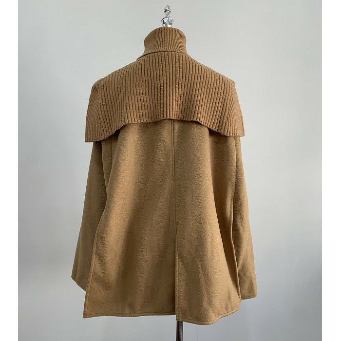 一部即納 2color ニット ケープ 付き スリット ポンチョ コート