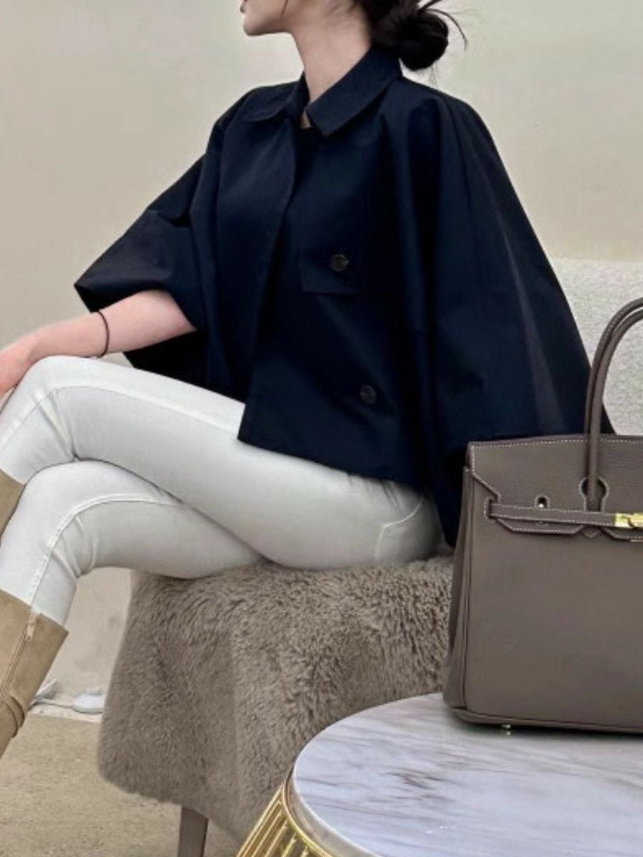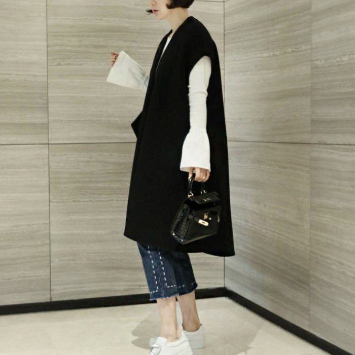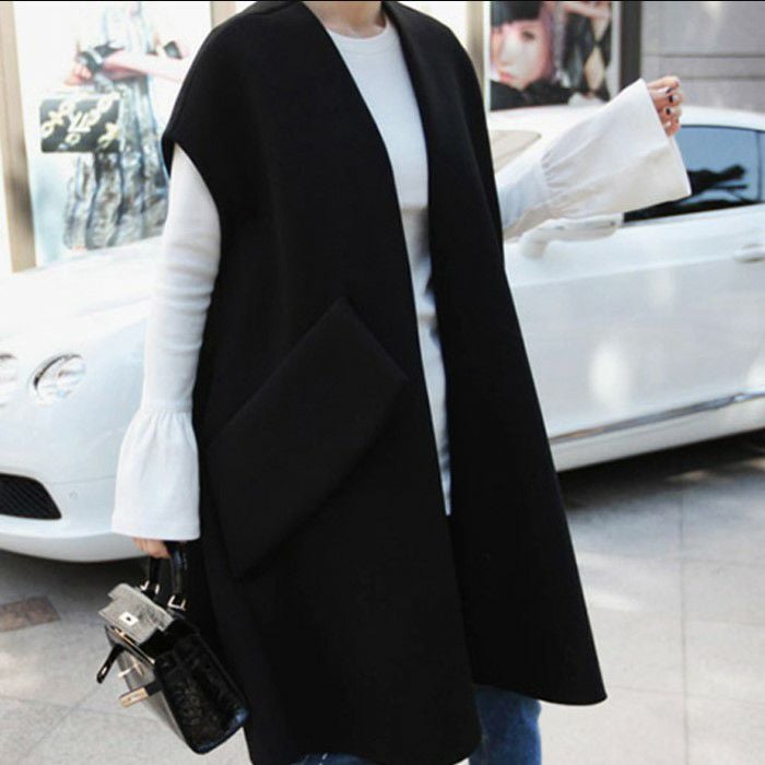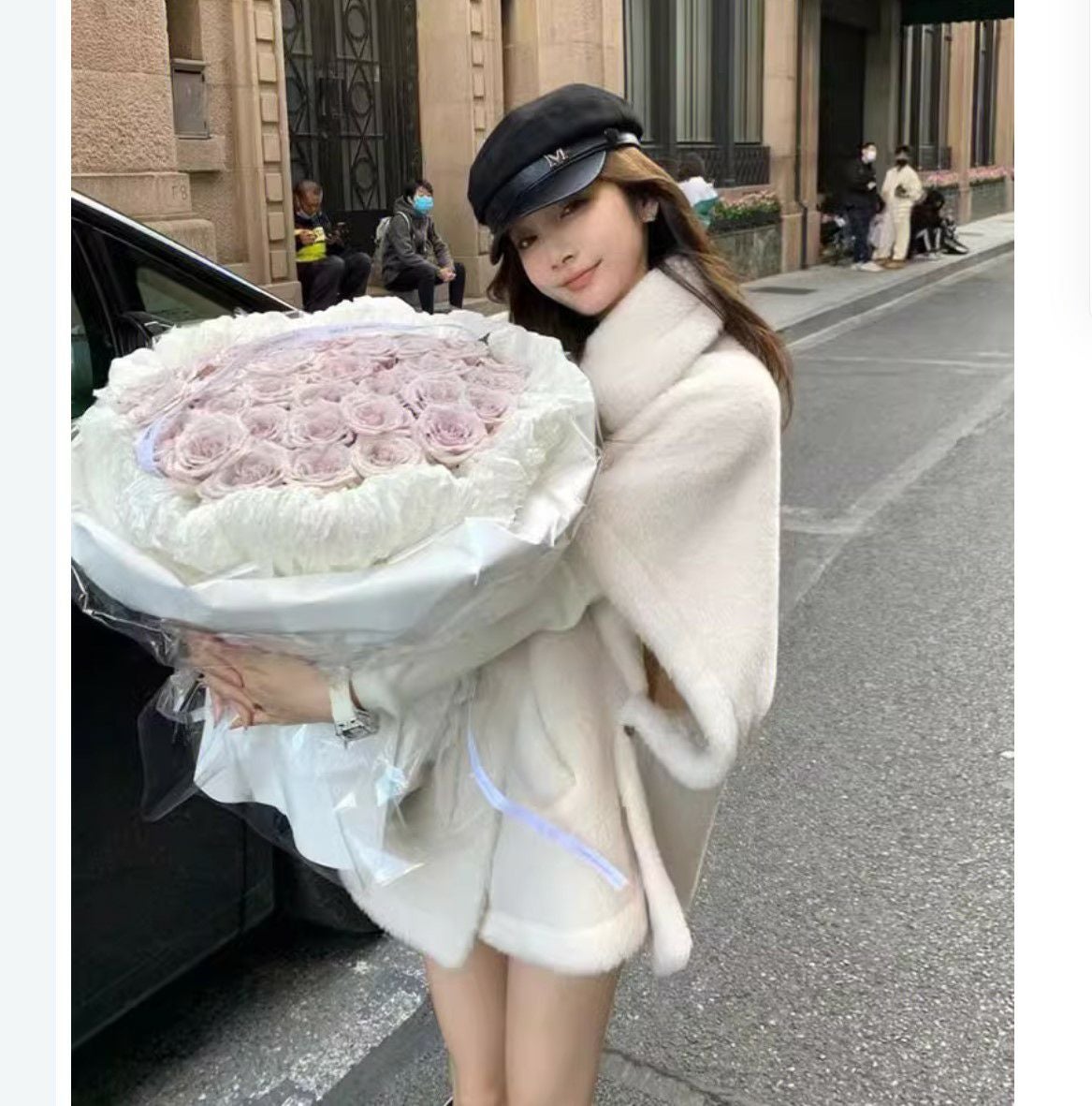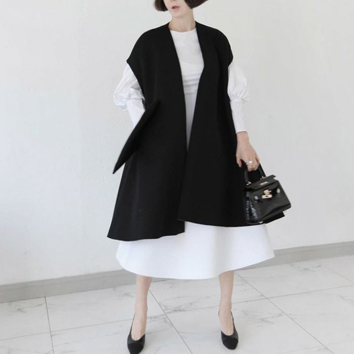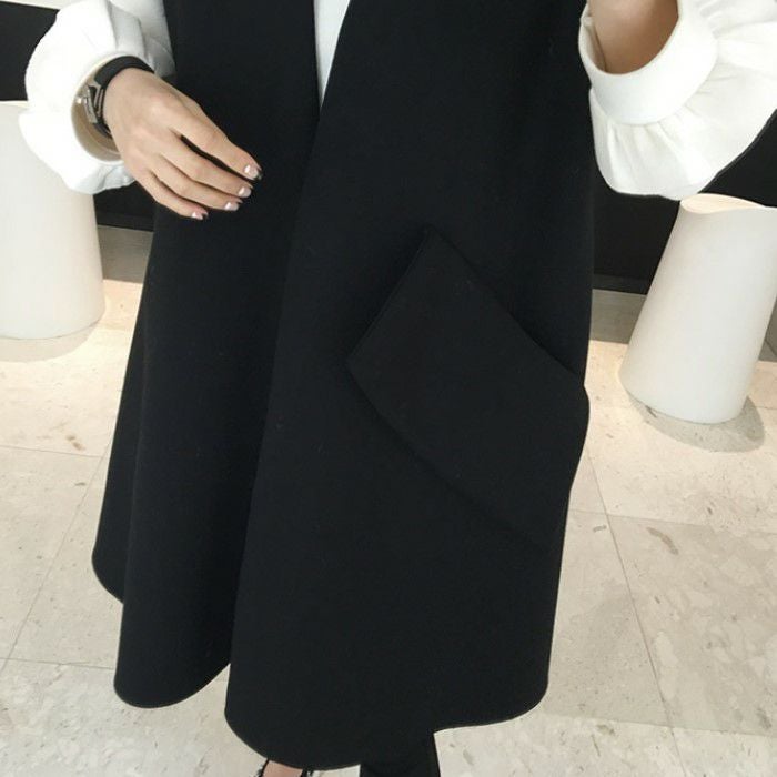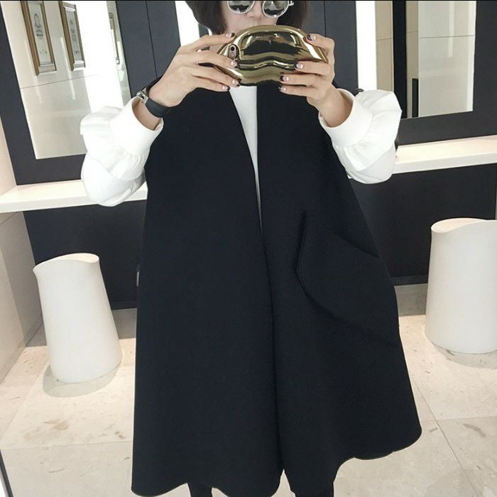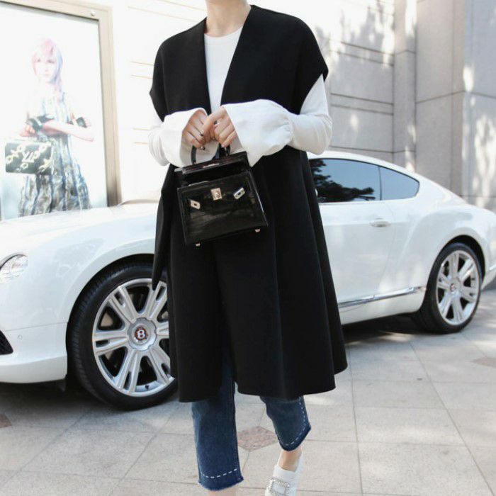一部即納 2color ニット ケープ 付き スリット ポンチョ コート
