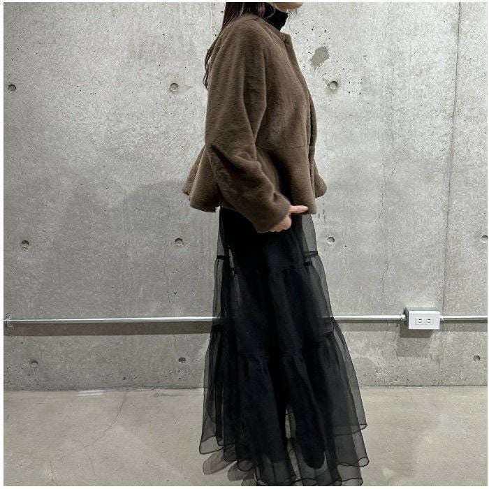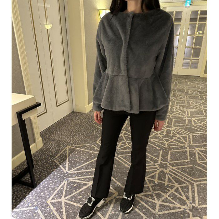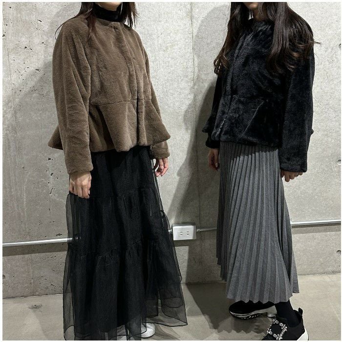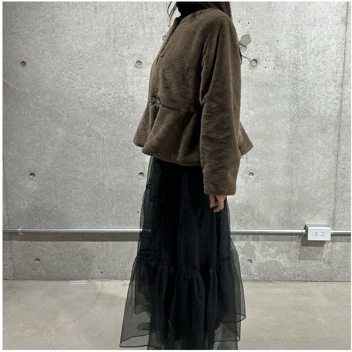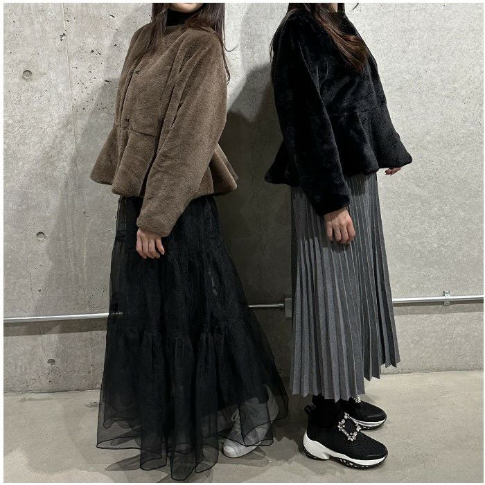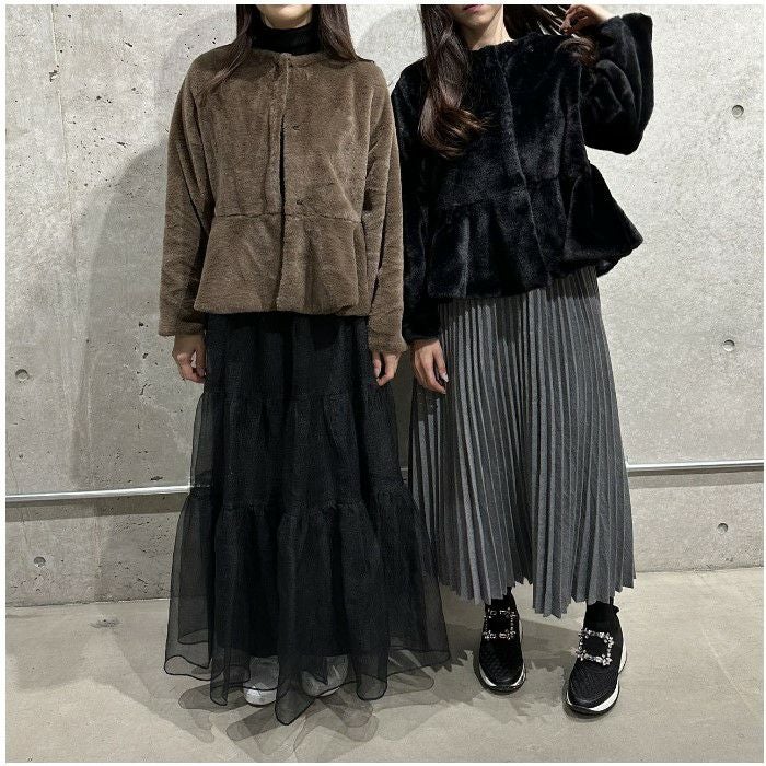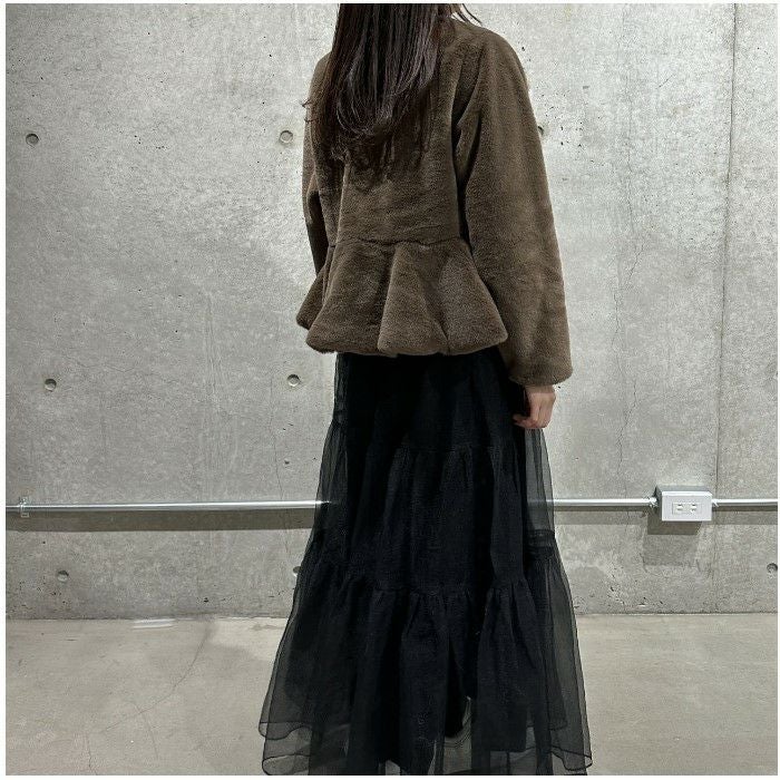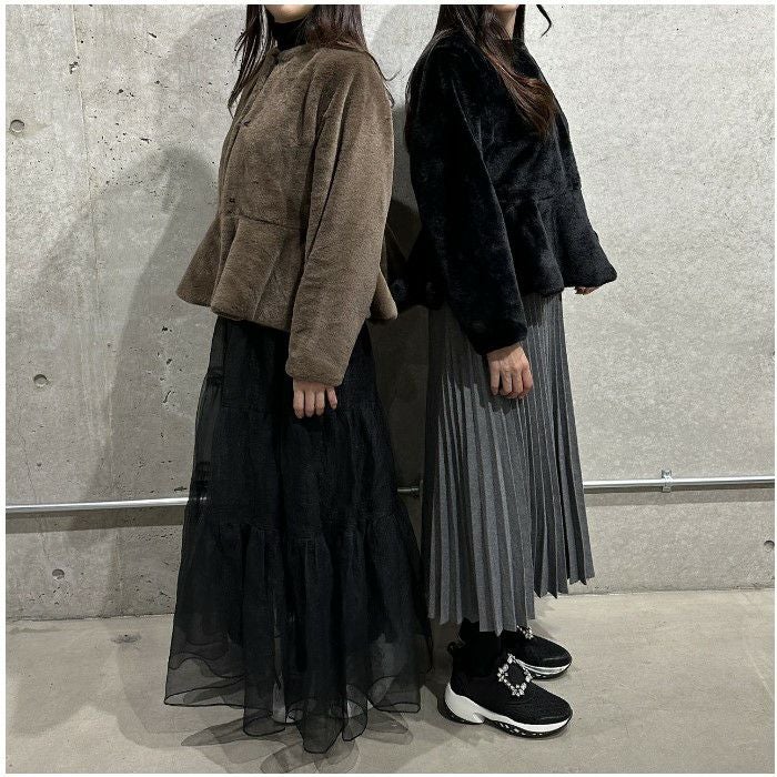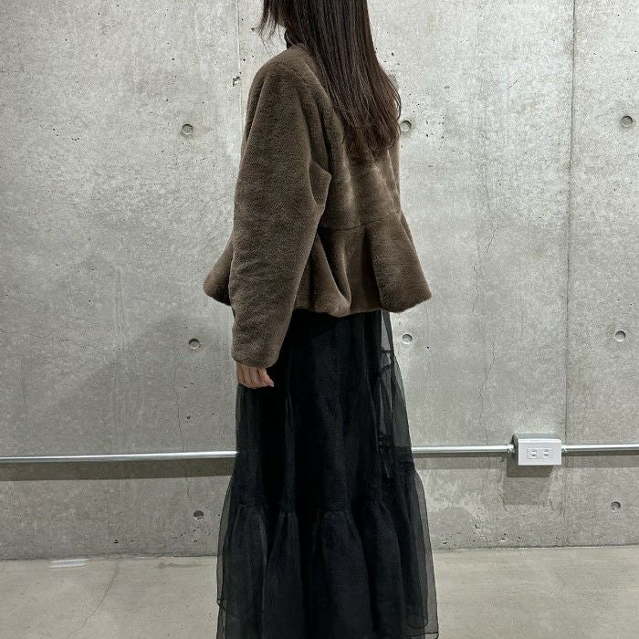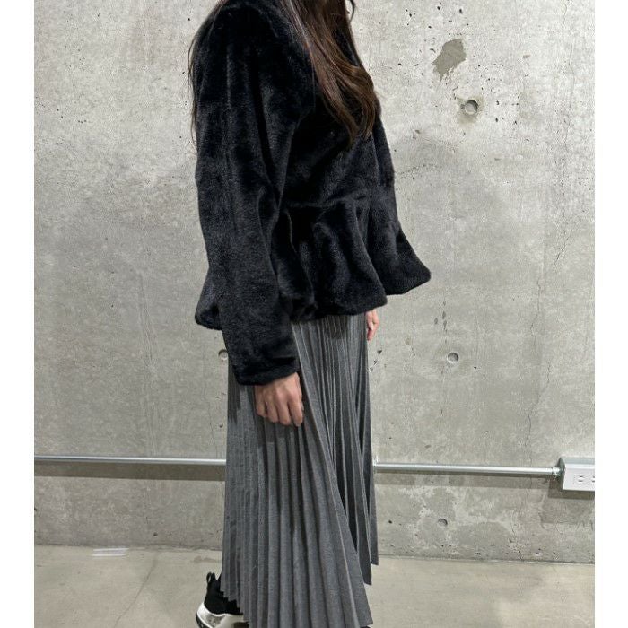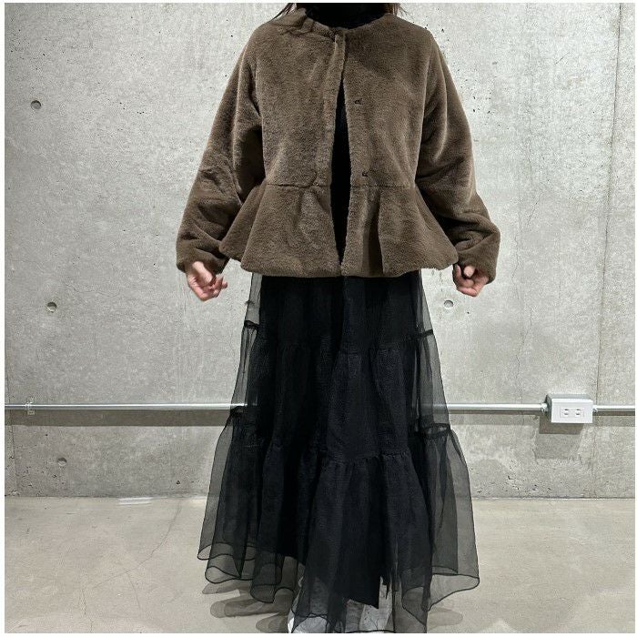 即納 4color ペプラム エコファー フェイクファー ジャケット コート