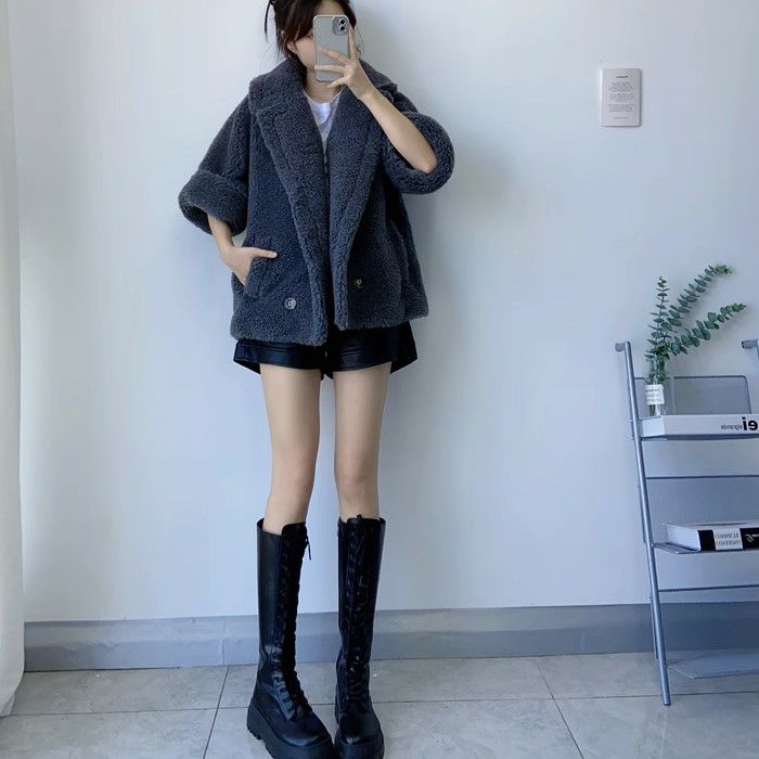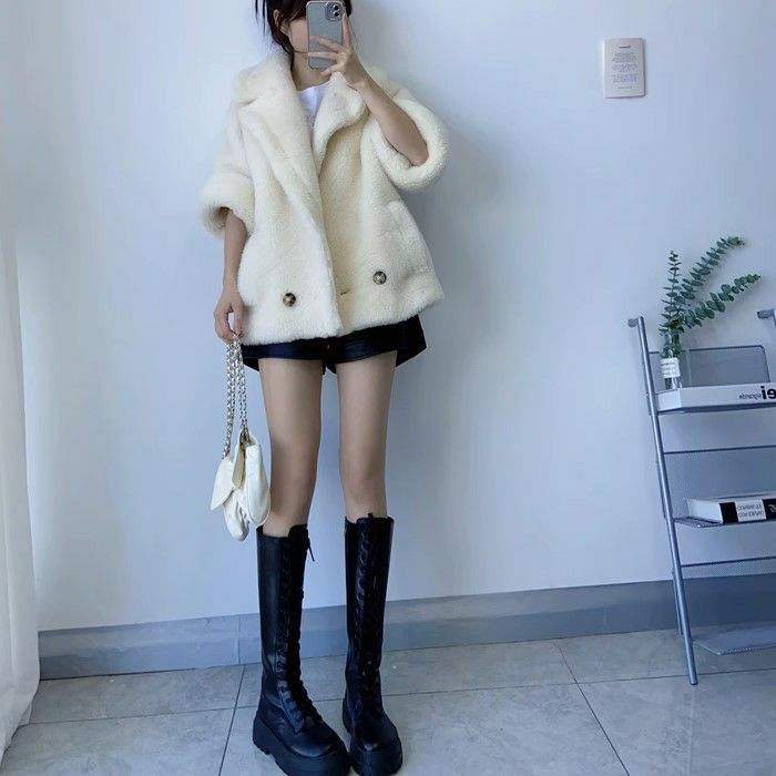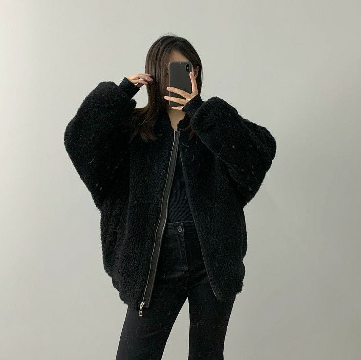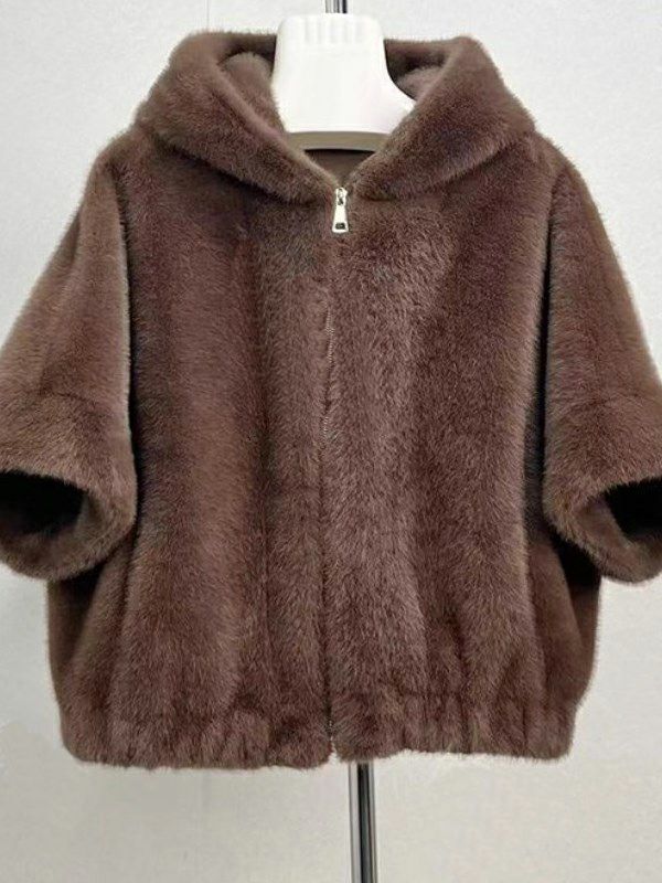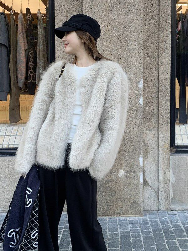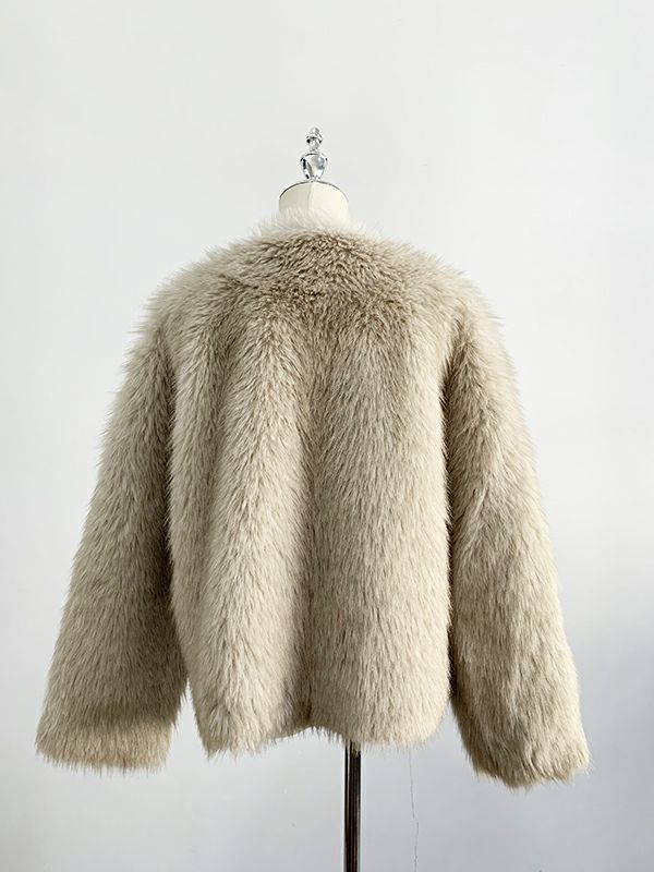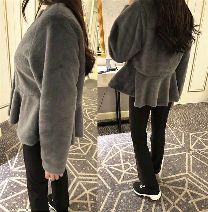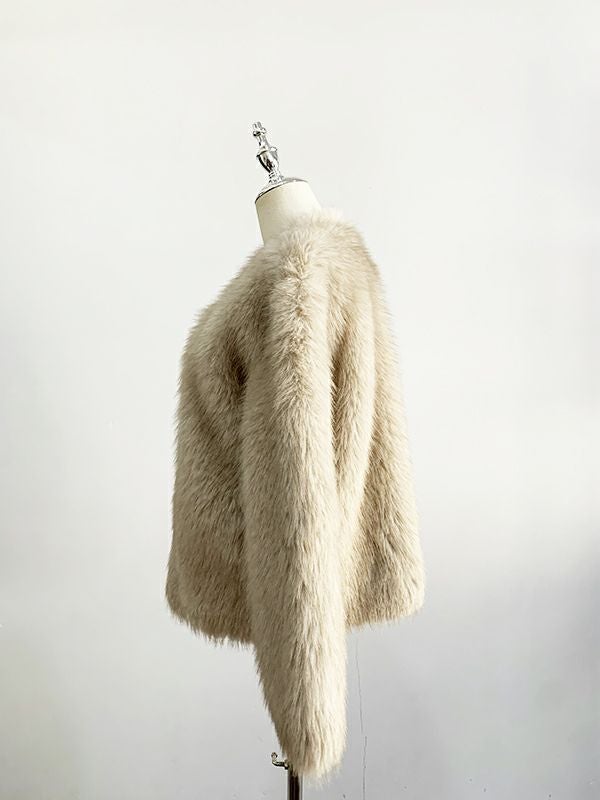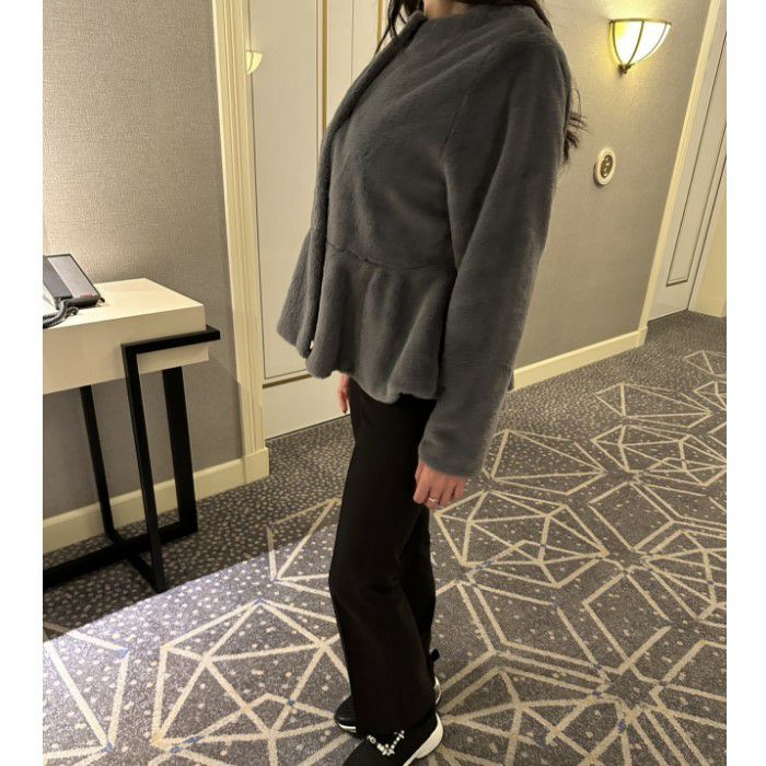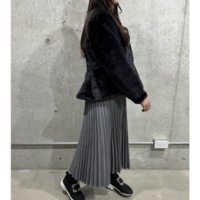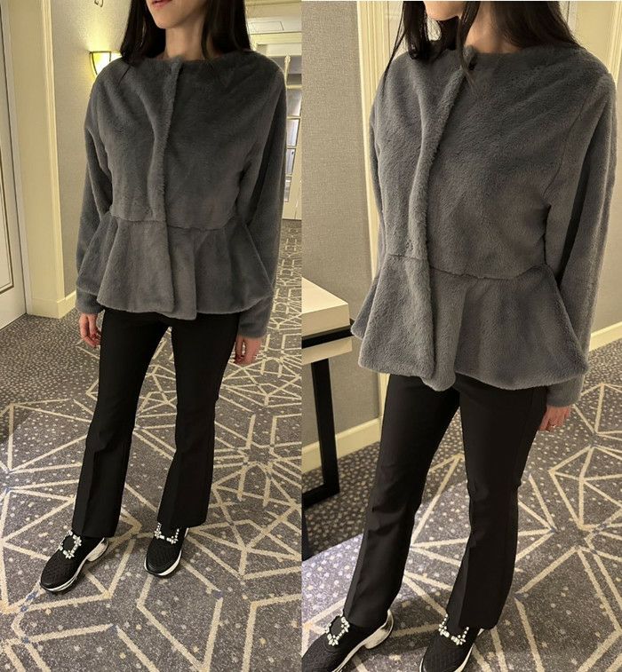 即納 4color ペプラム エコファー フェイクファー ジャケット コート