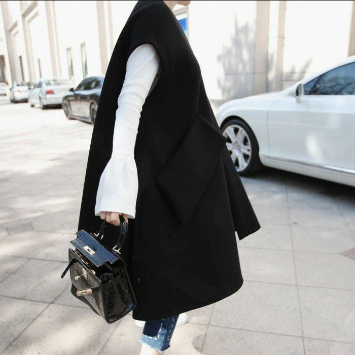 即納 2color ウール オープン ベスト アウター