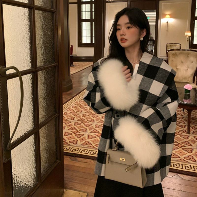上質なウール100%生地にスリーブファーが施されたデザイン性が可愛い一枚