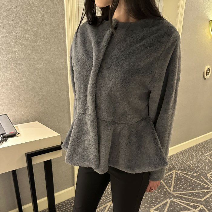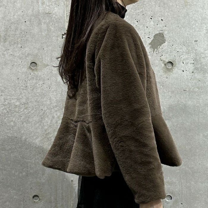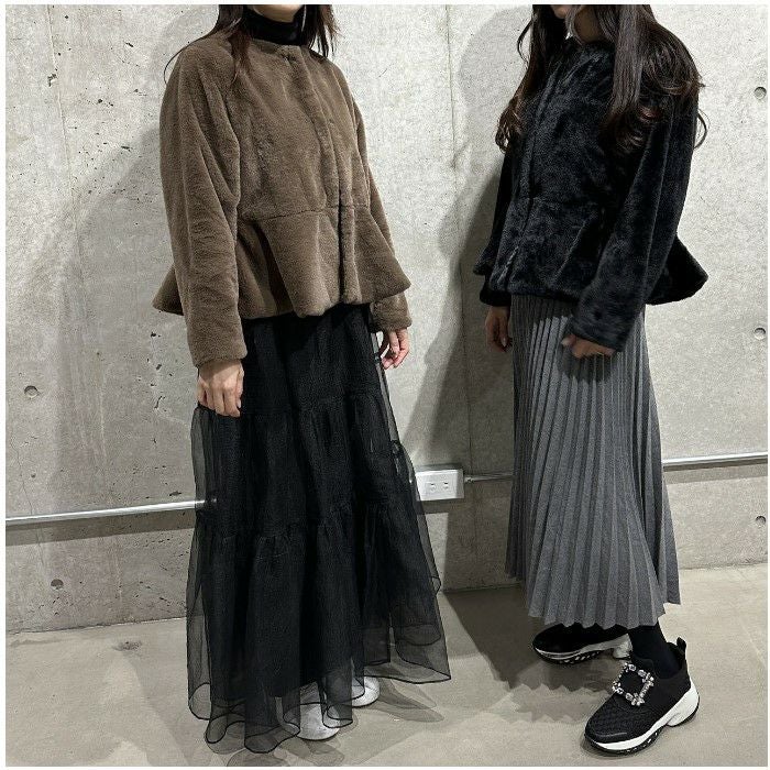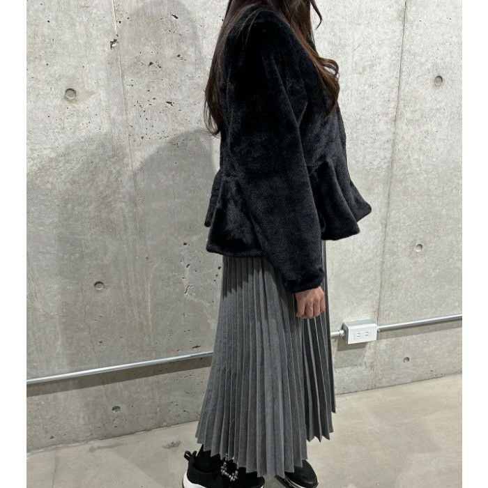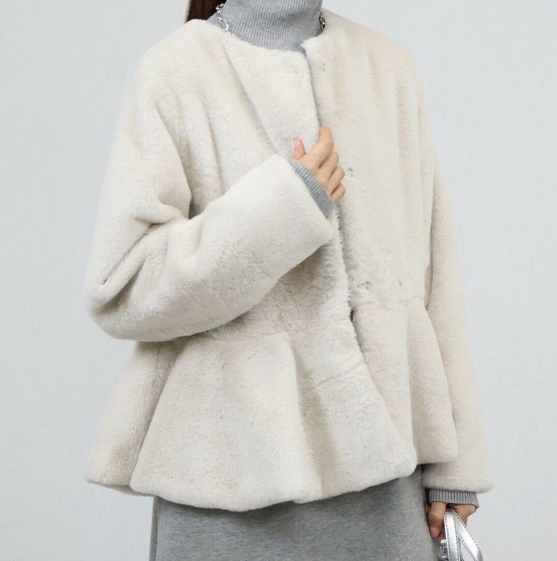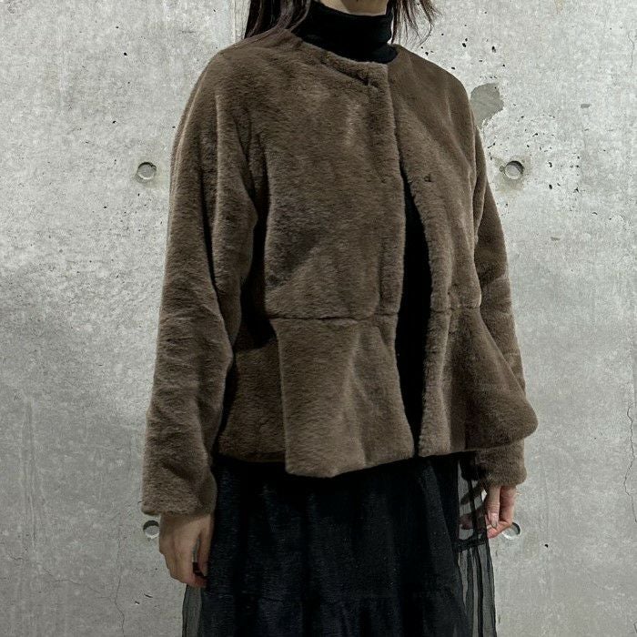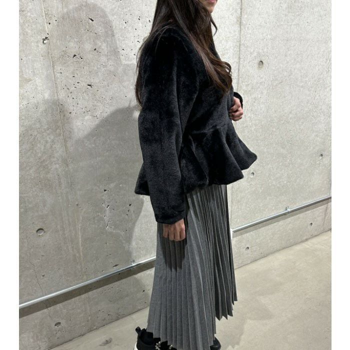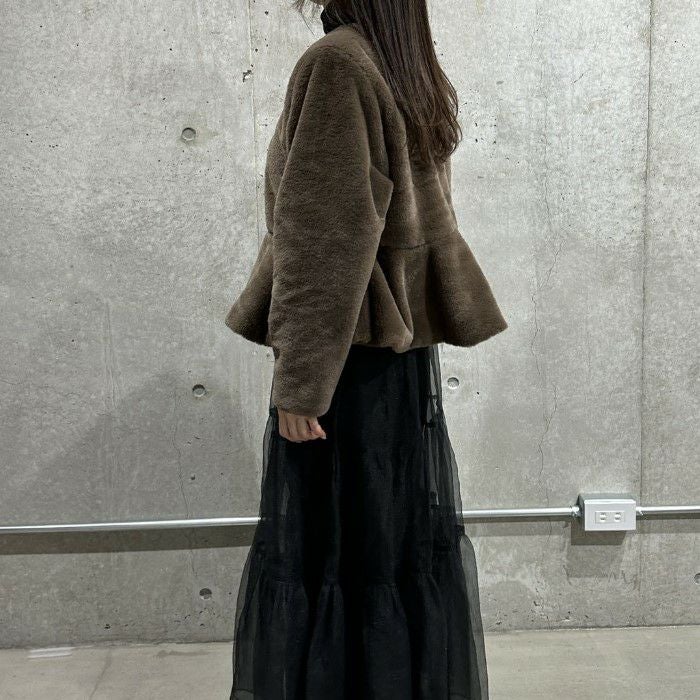 即納 4color ペプラム エコファー フェイクファー ジャケット コート