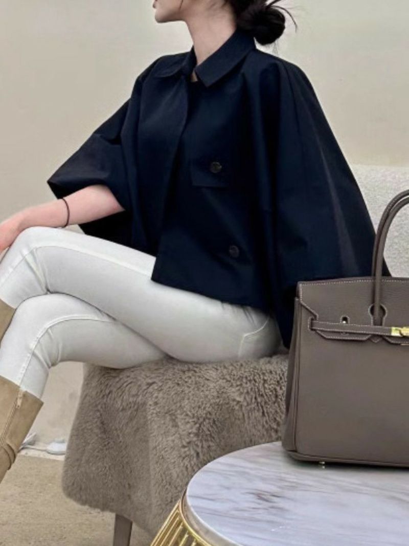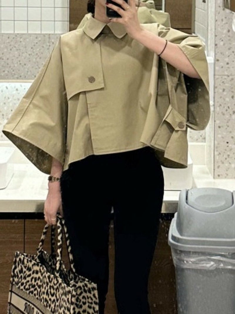 ショート丈と七分丈袖が今季らしいデザインのトレンチジャケット